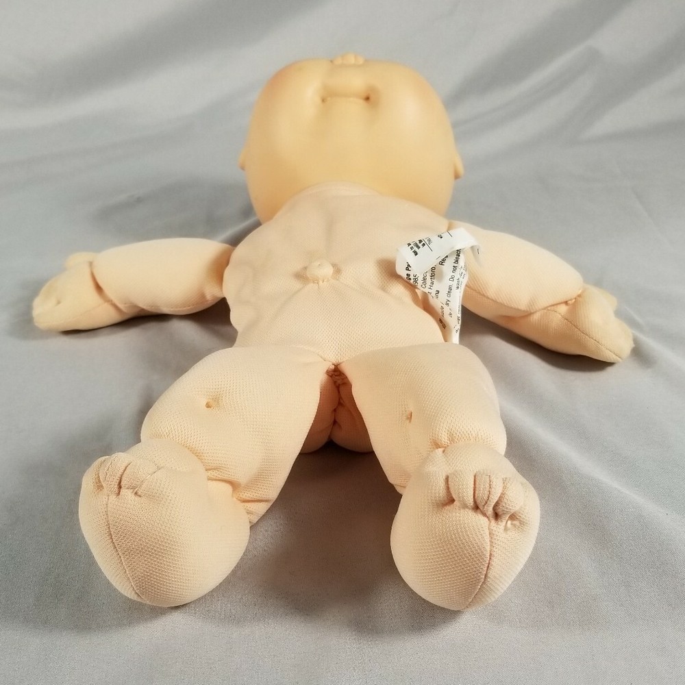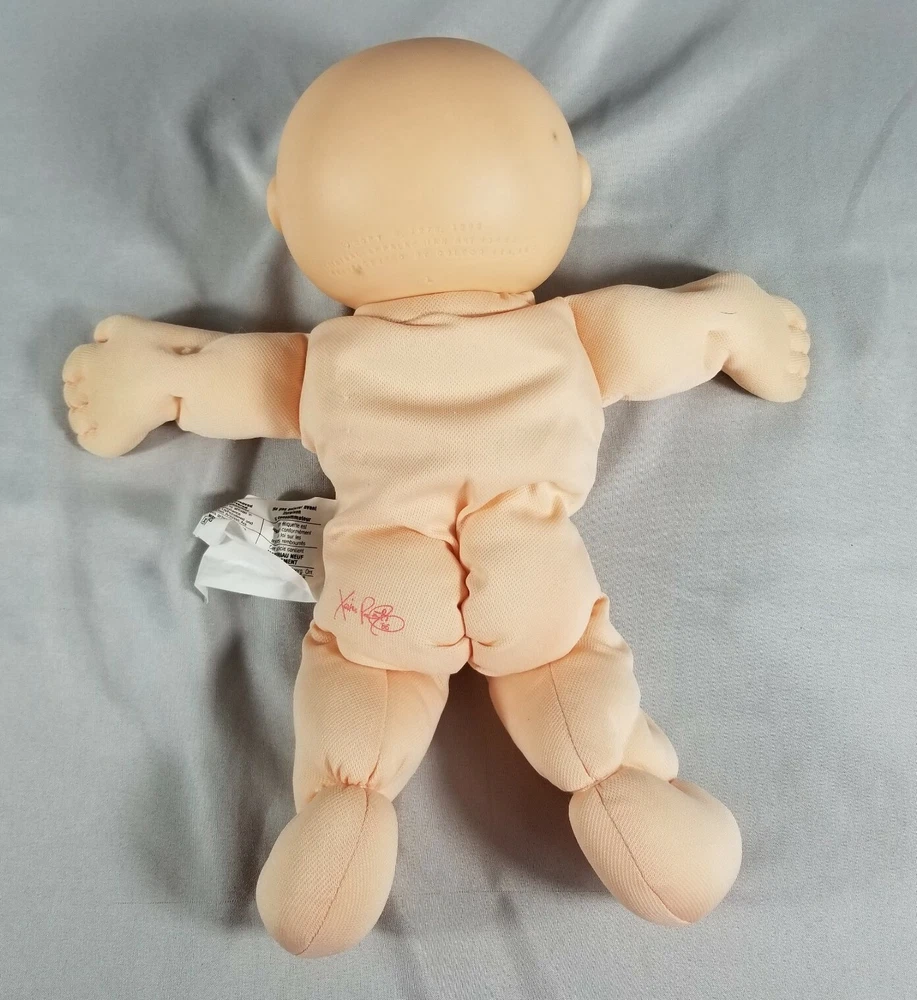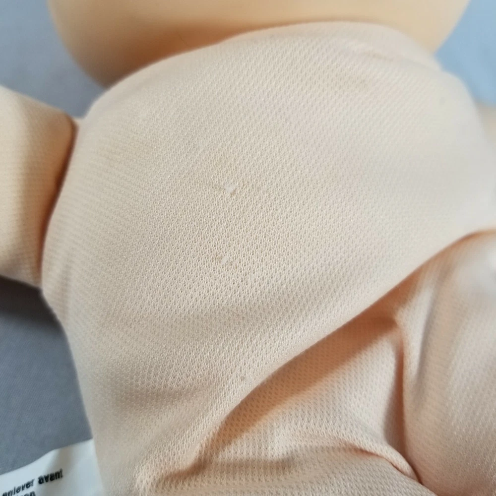 Vintage 1986 Cabbage Patch Kids baby doll, synthetic fiber and polymer bead filled. This doll is pre-owned. The doll does have marks on the head (please see pictures). There are also some small snags in the fabric on the body (please see pictures). Feel free to reach out with any questions.