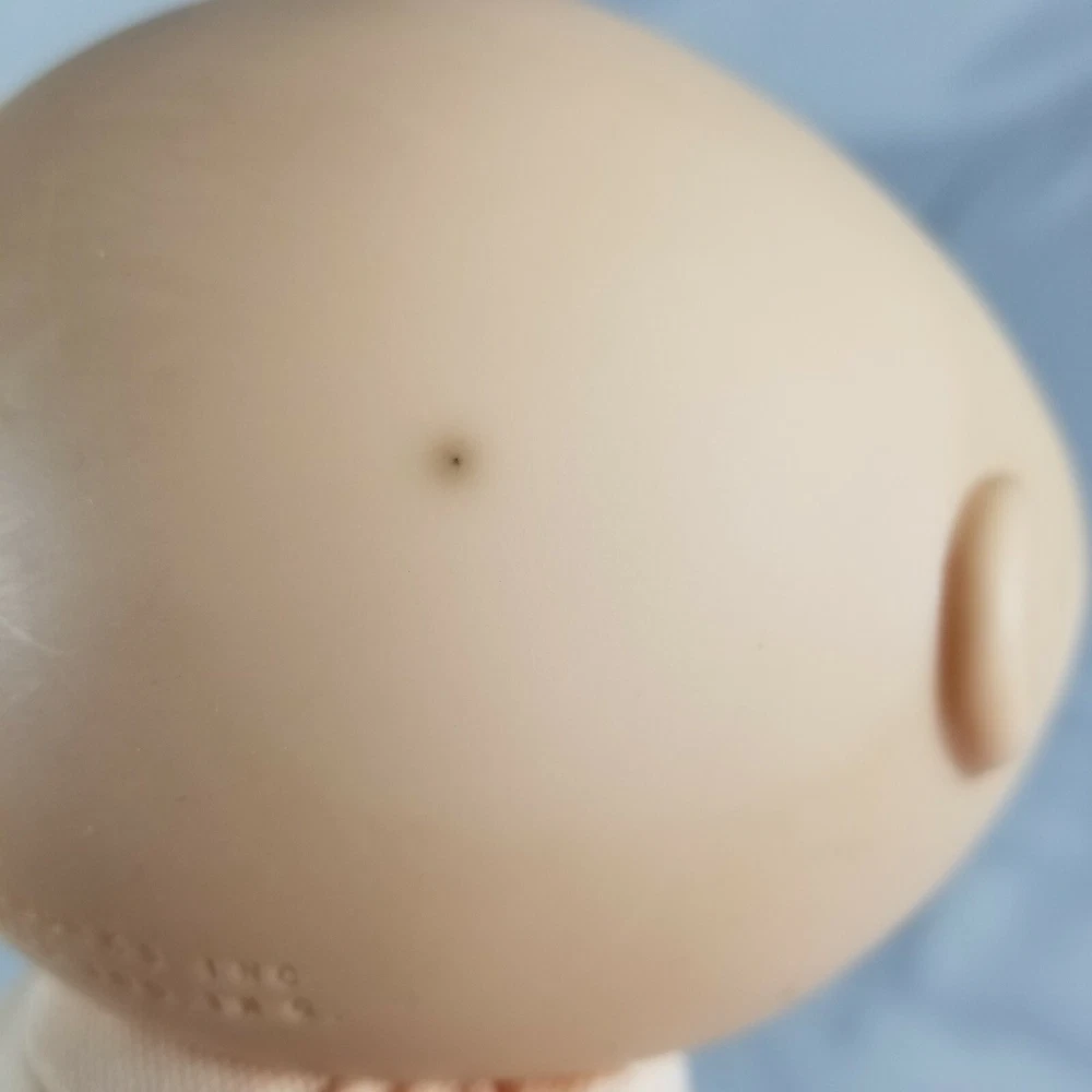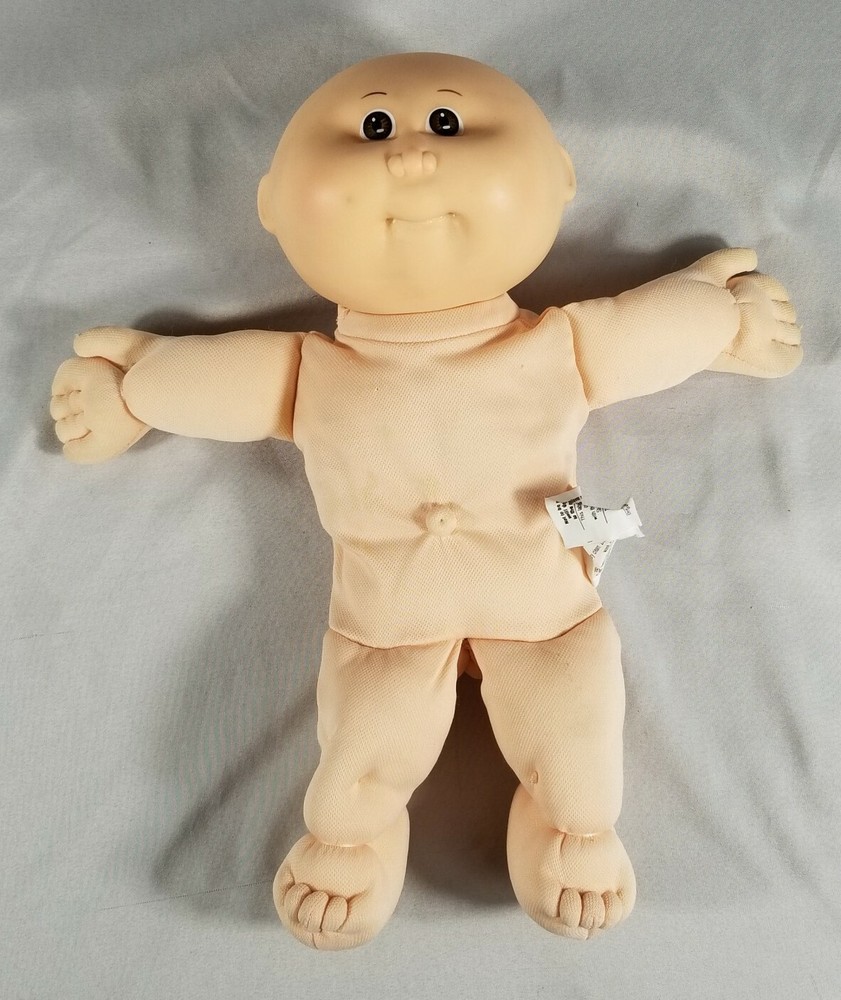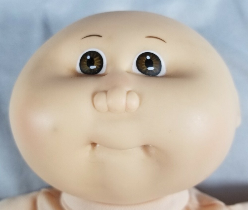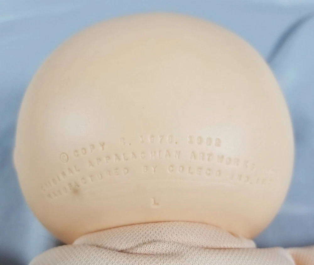 Vintage 1986 Cabbage Patch Kids baby doll, synthetic fiber and polymer bead filled. This doll is pre-owned. The doll does have marks on the head (please see pictures). There are also some small snags in the fabric on the body (please see pictures). Feel free to reach out with any questions.