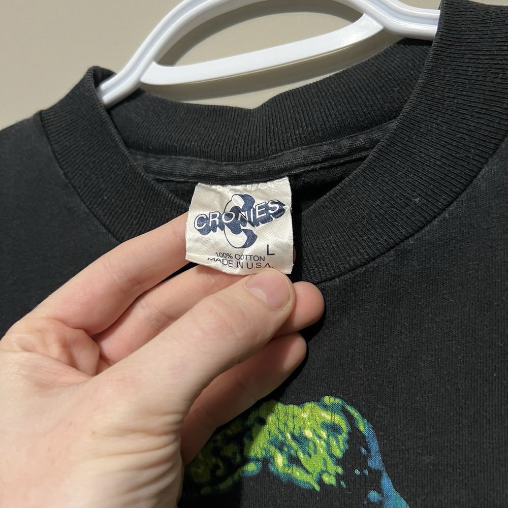 OG piece I don’t wear anymore, single stitch on the sleeves and double down low. Some nice fading throughout, light cracking on the graphic. Pin hole on the back of the left sleeve. Measurements layin...