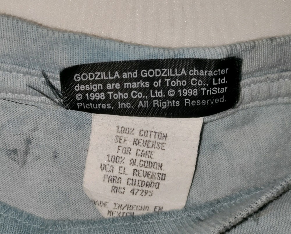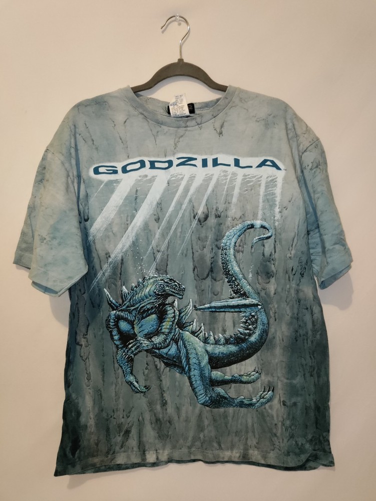 This vintage t-shirt from the 1998 Godzilla movie is a must-have for any fan of the classic film. With a bold graphic of the iconic monster, this shirt is perfect for adding a touch of nostalgia to any outfit. Made from high-quality materials, it is sure to last for years to come. Featuring a comfortable regular fit and available in size L, this t-shirt is perfect for men of all sizes. The blue color is both stylish and versatile, making it a great addition to any wardrobe. Whether you're a collector of vintage movie memorabilia or just looking for a unique piece of clothing, this Godzilla t-shirt is sure to impress.