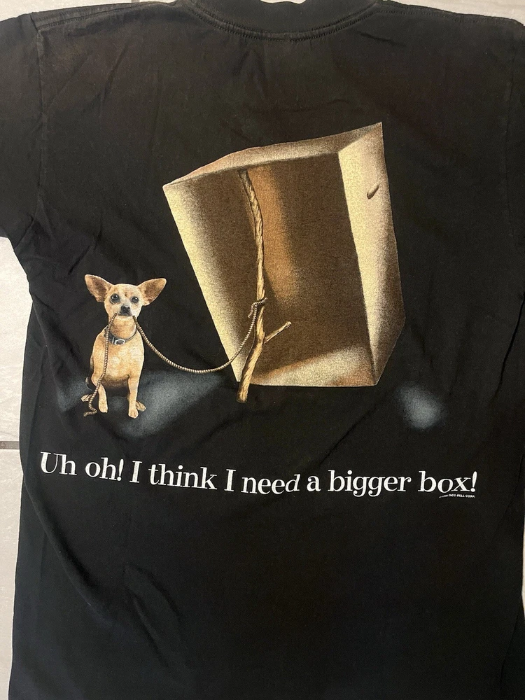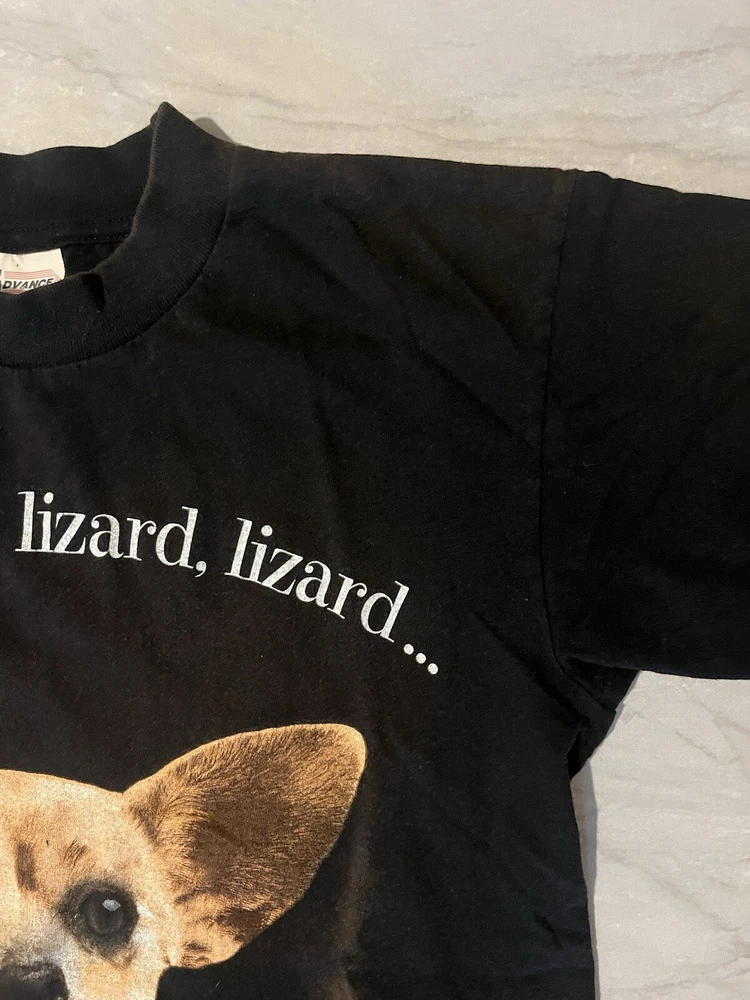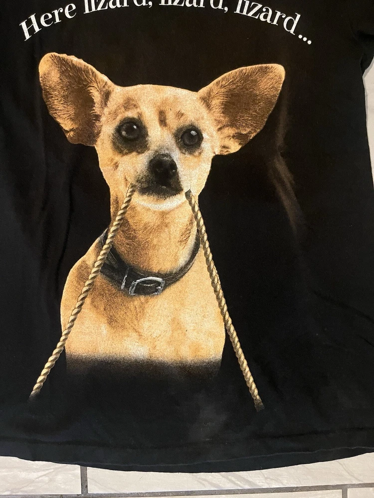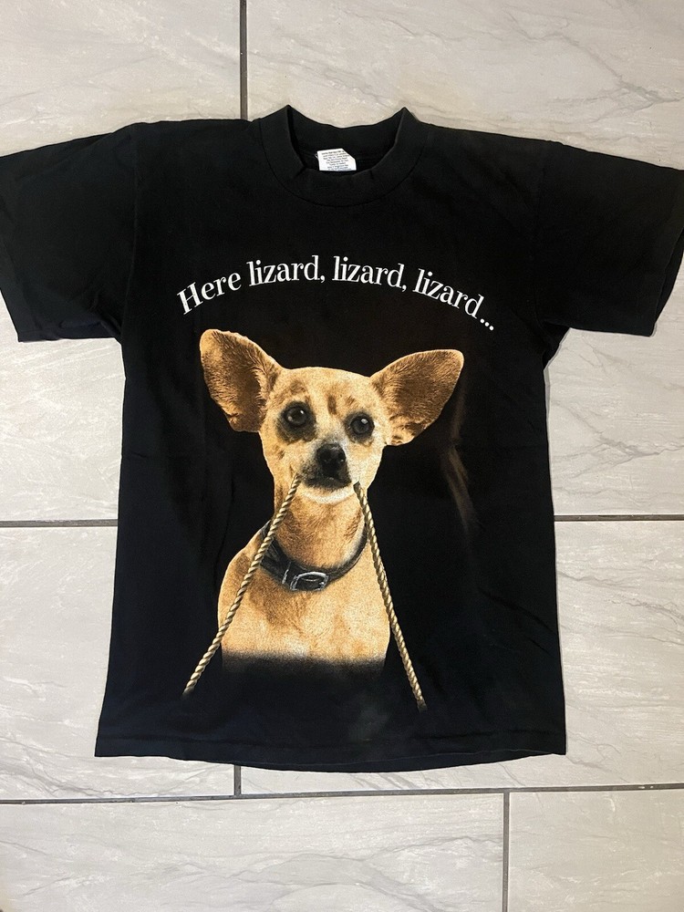 Vintage 1998 Godzilla Taco Bell movie Promo shirt in size Medium. Good condition. NOTE: light faded spot under front graphic and sun fading/bleach on the backside of the shoulders (shown in photos) Measurements: 21” x 27” Shipped 1-2 days after purchase. This vintage 1998 Godzilla movie promo t-shirt is a must-have for any fan of the iconic monster movie character. Featuring a solid pattern with short sleeves and a crew neck, this black cotton t-shirt is comfortable and stylish. The shirt is a size medium and has a regular fit, making it a great choice for any man who wants to show off their love for Godzilla. The t-shirt has a double-sided feature and is a vintage piece from the 90s. It is made in the United States and has the Taco Bell character family logo on it. This item is perfect for collectors and fans of the Godzilla franchise who want to add a unique piece to their collection.