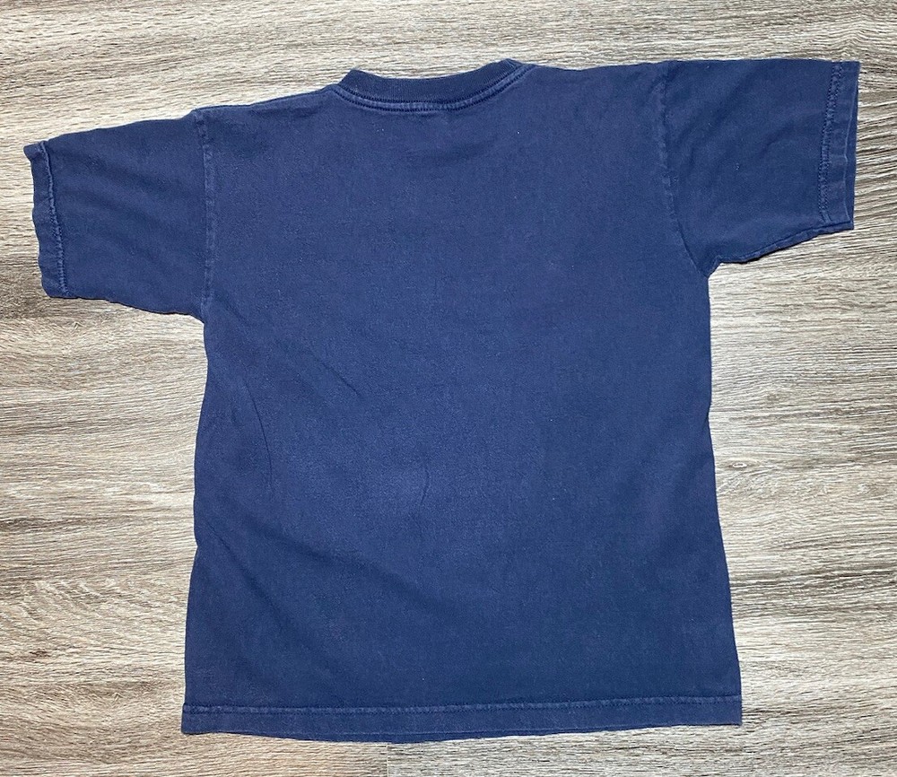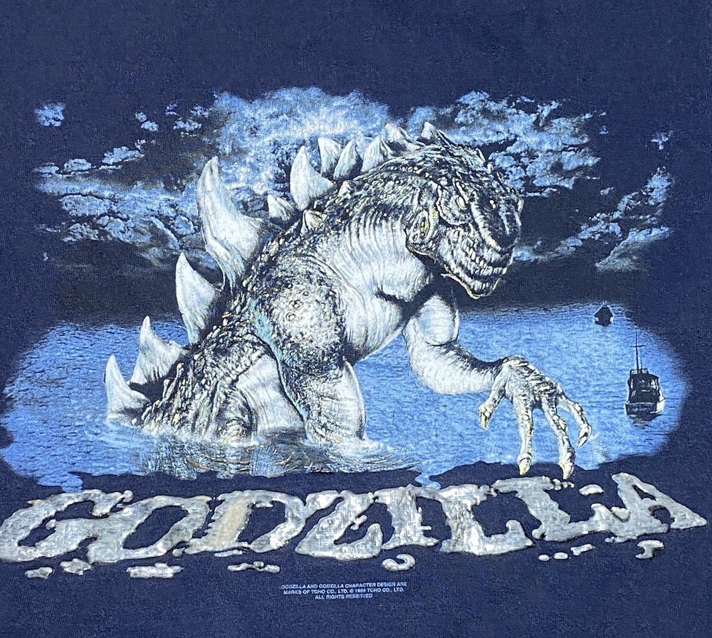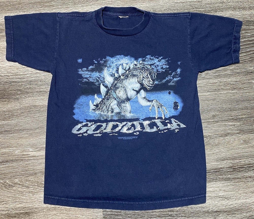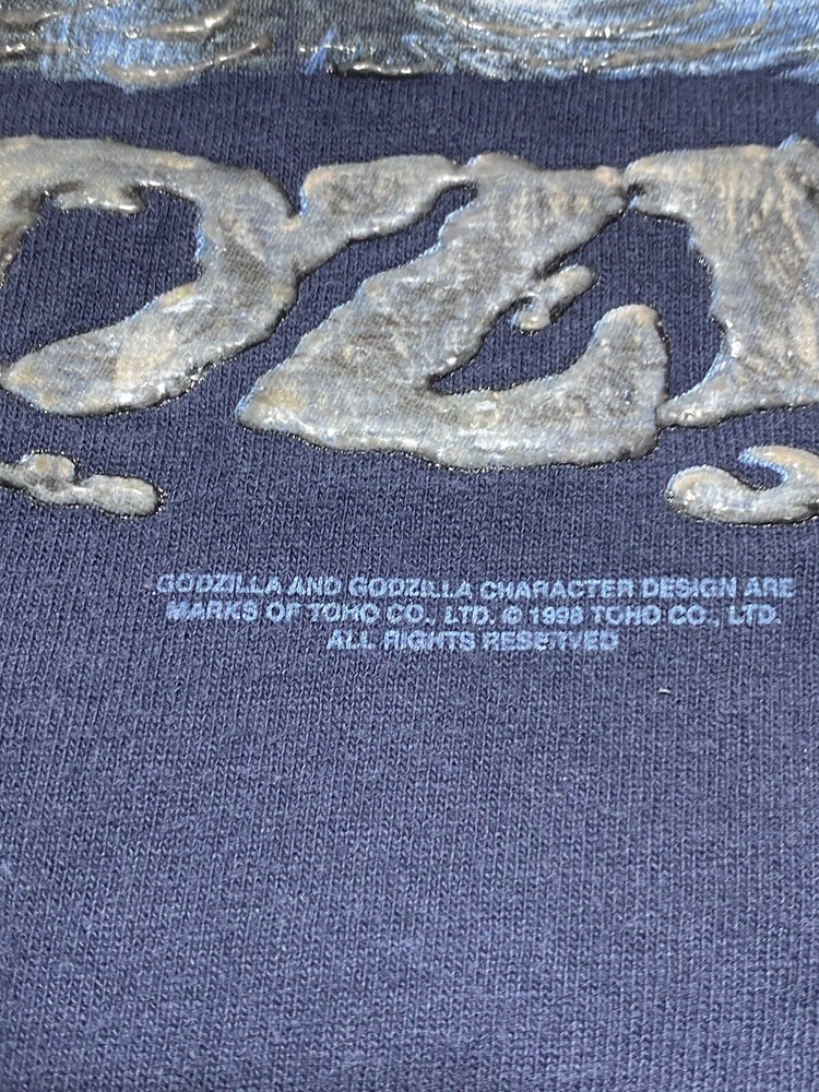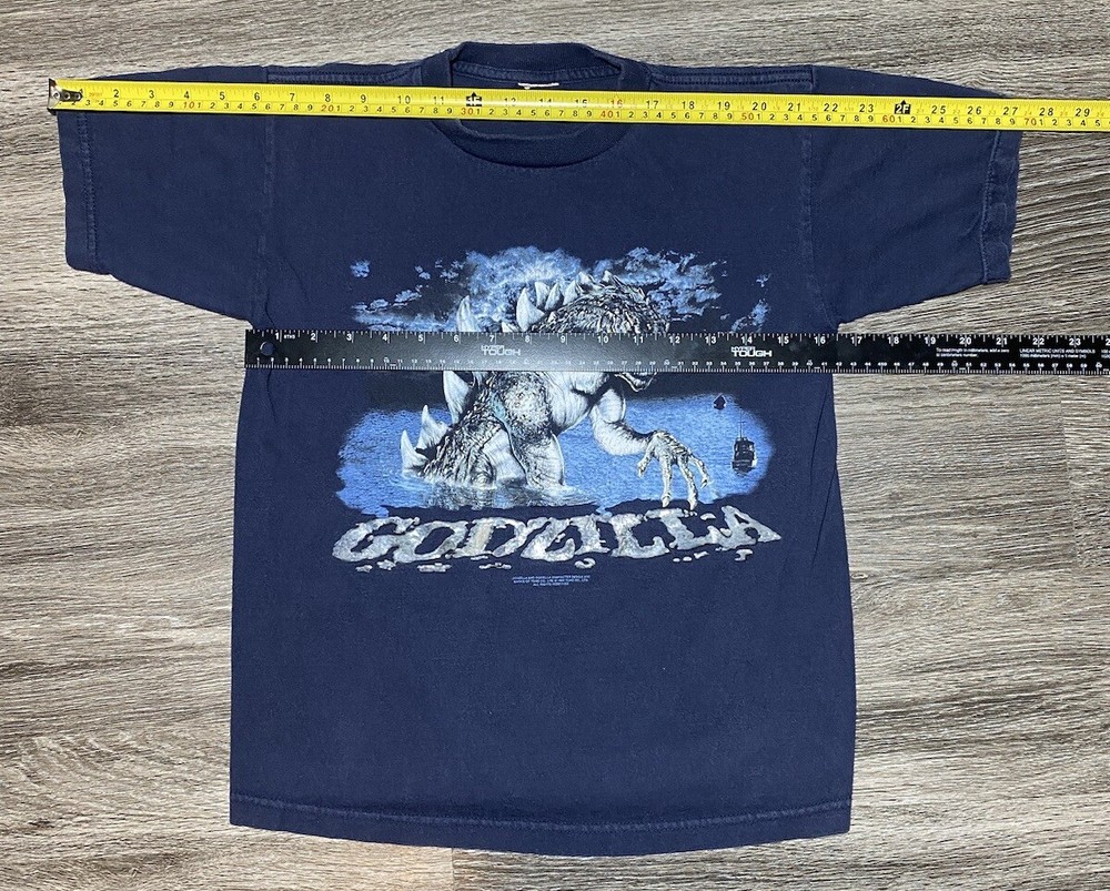 This vintage Godzilla shirt from 1998 is a must-have for any 90s enthusiast. The puff print design adds a unique touch to the classic blue color, making it a standout piece in any wardrobe. The shirt is available in a youth size large or a men's size small/medium, perfect for those who prefer a closer fit. The shirt is made by CRONIES and is of excellent quality. It is perfect for any fan of the Godzilla franchise or anyone looking for a stylish vintage shirt. Add this to your collection today! Great condition no flaws ready to ship!