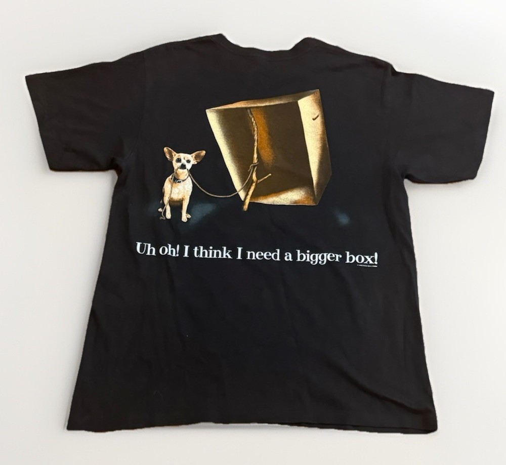 This shirt is an absolute gem! The fit is perfect, the vintage print is vibrant, and it's such a cool piece of 90s nostalgia. Love it!