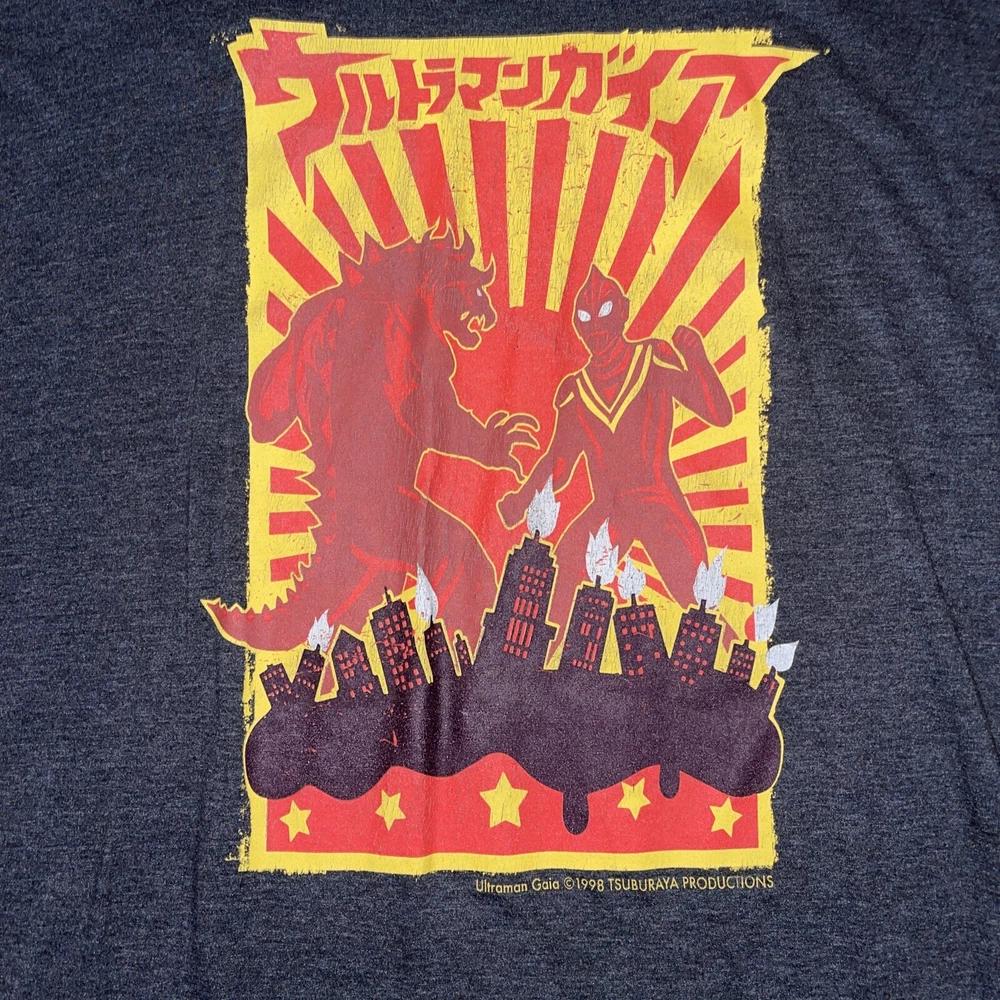 Vintage 1998 Ultraman Gaia Godzilla Fighting Robot Graphic T Shirt XL....