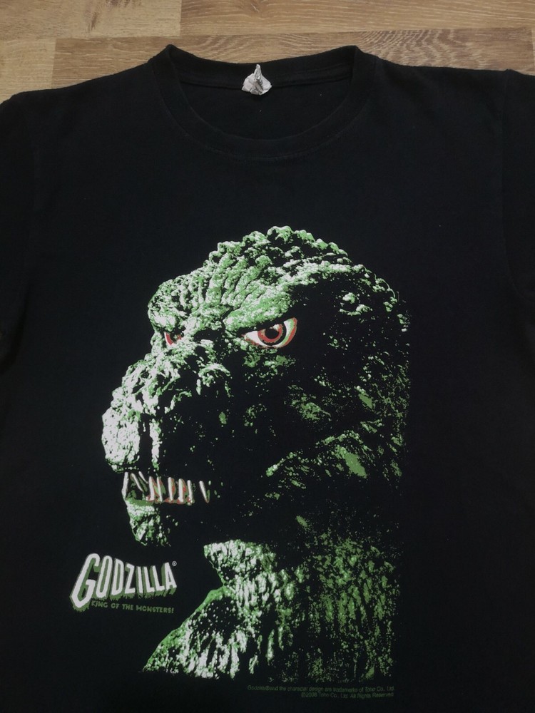 Rare! True Vintage Original 2000's The Legendary American Monster Film Official Godzilla Movie Gojira Promo T Shirt Licenced By Toho Co. Ltd King of the Monsters! Please noted that this shirt is true vintage / used / pre-owned. Don't expected the item to be like new. There are signs of worn. Slightly faded black color t shirt. No obvious holes spotted. Minor stains spotted at back part of the t shirt. Minor discoloration spotted near the collar area. Minor crack spotted on the print. Overall still in good vintage condition. Please refer pictures attached for more details on the shirt. Anvil Tag. Small Size On Tag. Armpit to Armpit 18". Shoulder to bottom 26.5". 100% Cotton. $55 OR BEST OFFER Horror Cult Movie Film Dracula Poster Halloween Black Sabbath Demon Knight Blue Velvet The Thing Chucky Freddy Krueger Nightmare On The Elm Street Night of The Living Dead Ghosts Damned Creepy Sci Fi Frankenstein Monster Scary Raptee