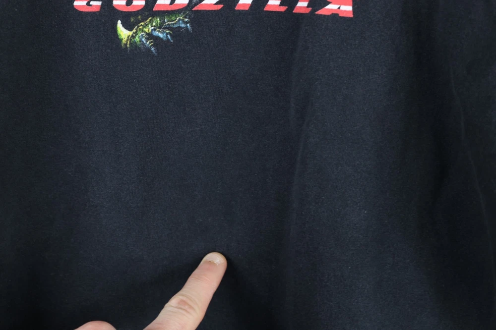 This vintage Godzilla tee is a must-have for fans! The faded print gives it awesome retro charm, and the soft cotton feels broken-in just right. Fits like a classic 90s small—super comfy with that perfectly worn-in vibe. Free shipping is a nice bonus! Snagged this gem and couldn’t be happier.