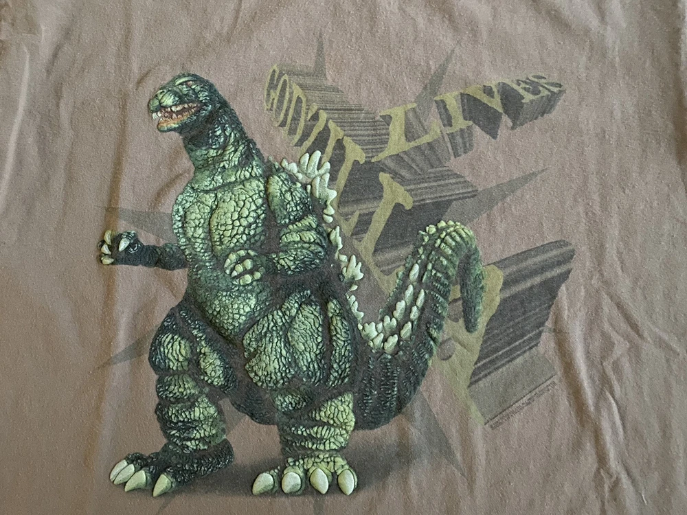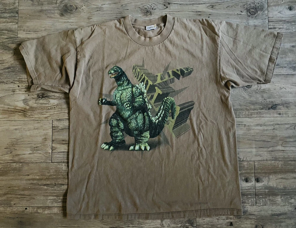 Vintage 90s Rare Godzilla Lives Spell Out Movie Promo 3D Made In USA Mens XL. Condition is "Pre-owned". Shipped with USPS First Class....