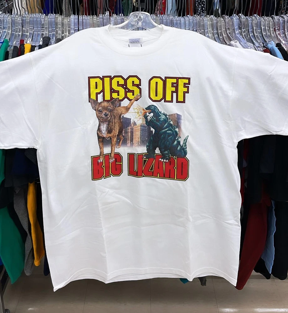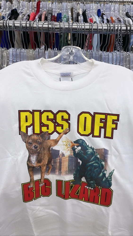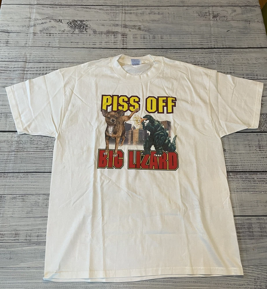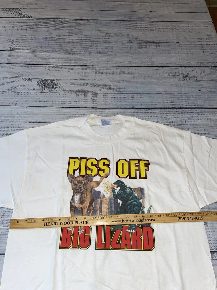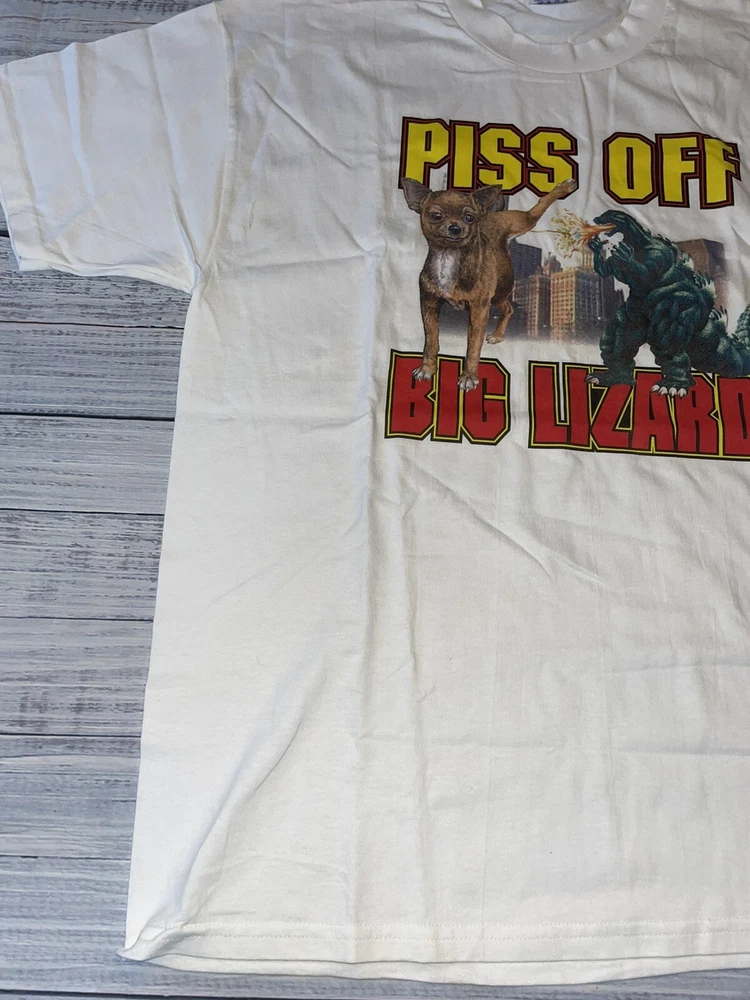 This Vintage 98 Taco Bell Chihuahua Vs Godzilla Movie Promo T-Shirt is a must-have for any fan of the 90s era. Featuring a solid pattern with a crew neck and short sleeves, this shirt is made of machine washable cotton material for easy care. The shirt comes in a rare XL size and is perfect for both winter and summer seasons. The shirt also boasts a vintage logo accent and is a part of the Godzilla character family. It was manufactured in Mexico in the 1990s and is ideal for any regular fit size type. Personalization is not available for this shirt. Add this unique and rare piece to your collection today!