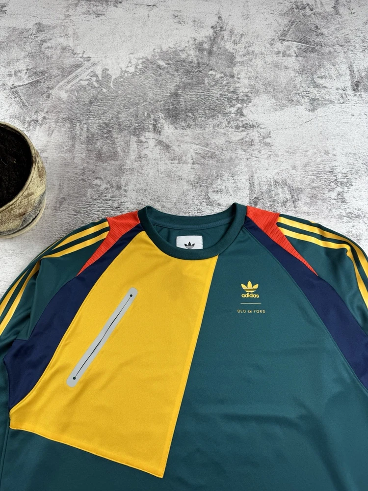 This rare, vintage-inspired Adidas Bed J.W Ford Game Men Hype Jersey Longsleeve T-Shirt Tee is a must-have for any collector or fashion enthusiast. Featuring a unique blend of fabrics, this shirt is made with both polyester and cotton, making it both lightweight and heavy-duty. The shirt is adorned with a variety of accents, including fur trim, fringe, studded, button, quilted, beaded, buckle, embroidered, sequin, and logo accents. The shirt has a crew neck and long sleeves, with a regular fit and size type. It is perfect for all seasons, with features like being breathable, full zip, glow in the dark, heavy-duty, padded, quick dry, and oversized. The shirt is machine washable and has a multicolor graphic print with a variety of characters, including Captain America, Iron Man, and Batman. This limited edition shirt is from the Adidas Bed J.W product line and is Portugal-made.