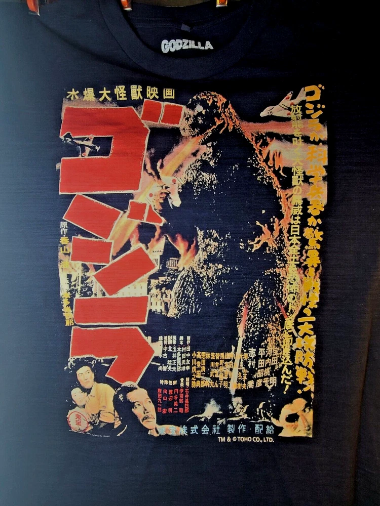 FOR YOUR CONSIDERATION : Vintage Adult L LARGE Folcart Co GODZILLA TOHO 1954 MOVIE PROMO T SHIRT Dark Blue CONDITION : Preowned, but only worn a couple of times. No holes, rips or fading, and the graphics are nice and vibrant. Please look at all photos. Vintage Godzilla Toho Co, Navy Blue Tee Size L Movie Film Promo 1954 Movie. Capture the essence of cinematic history with this vintage Godzilla Toho Co. Navy Blue Tee. This unique piece is a nostalgic tribute to the iconic 1954 Godzilla movie, making it a must-have for fans and collectors alike. Crafted with care, this tee showcases the classic Toho Co. logo, representing the renowned production company responsible for bringing the legendary Godzilla franchise to life. The navy blue color adds a touch of sophistication and versatility, making it suitable for both casual wear and dedicated movie-themed events. This vintage tee is a genuine film promo item, serving as a tangible connection to the original Godzilla movie. Its distinct design and attention to detail pay homage to the timeless legacy of this legendary creature. By owning this piece, you become part of the Godzilla fandom and carry a piece of cinematic history with you. The tee size is Large, providing a comfortable fit for enthusiasts of various body types. Indulge in nostalgia and pay tribute to the everlasting impact of Godzilla by adding this Vintage Godzilla Toho Co. Navy Blue Tee to your collection. Wear it proudly, displaying your love for the iconic 1954 movie and the awe-inspiring monster it introduced to the world. WE SHIP EVERY DAY AND ADD INSURANCE TO ALL PACKAGES. PLEASE LOOK AT ALL PHOTOS PRIOR TO BIDDING/PURCHASING, AS THEY ARE AN IMPORTANT PART OF THE DESCRIPTION. NO SHIPPING TO ALASKA, HAWAII, or PUERTO RICO. CONUS ONLY PLEASE CONTACT US PRIOR TO OPENING A CASE OR LEAVING A NEGATIVE OR NEUTRAL FEEDBACK IF YOU HAVE AN ISSUE WITH YOUR PURCHASE. Track Page Views With Auctiva's Counter