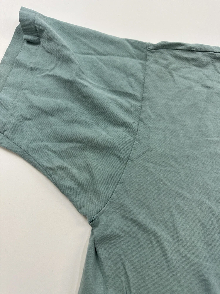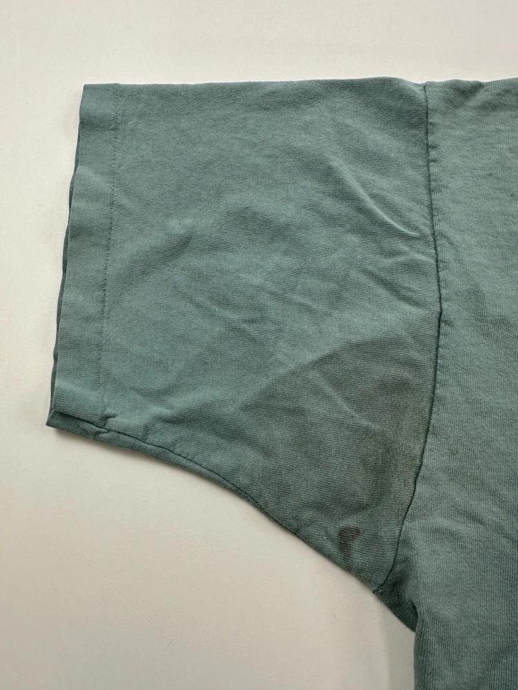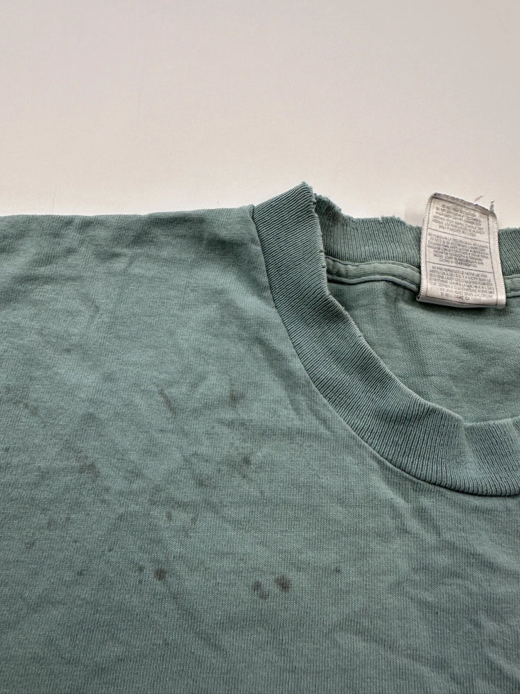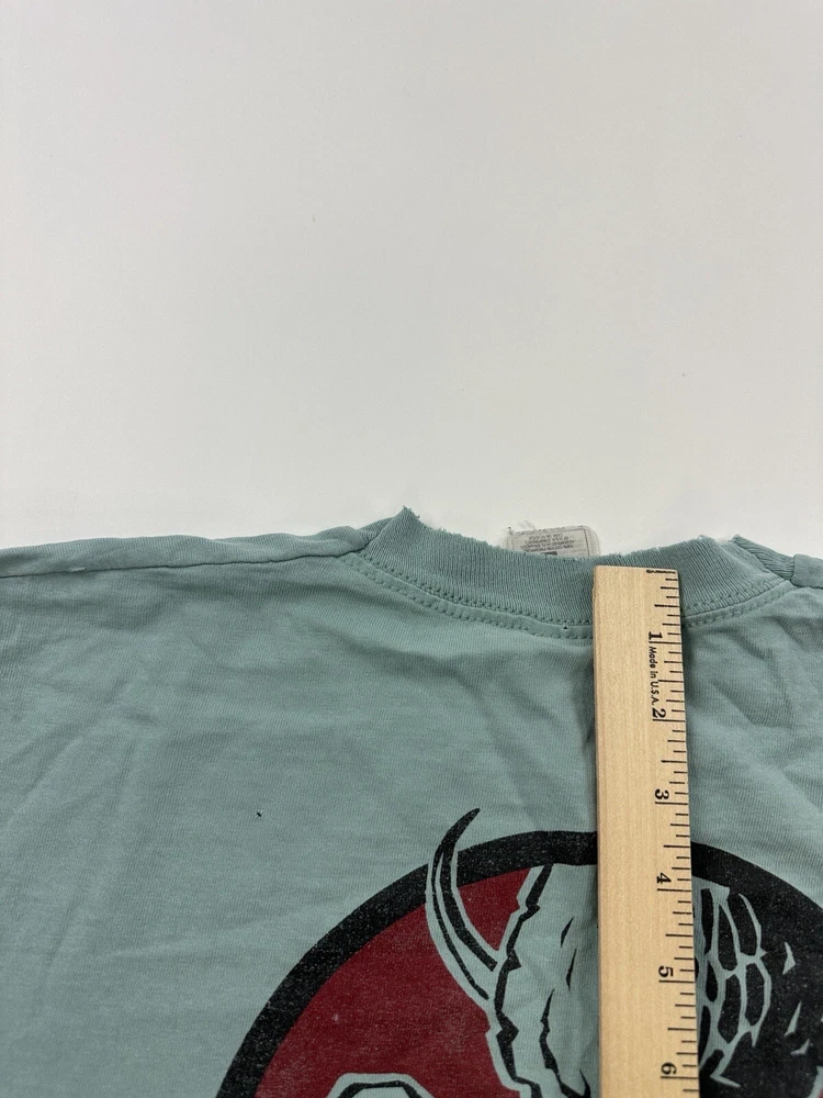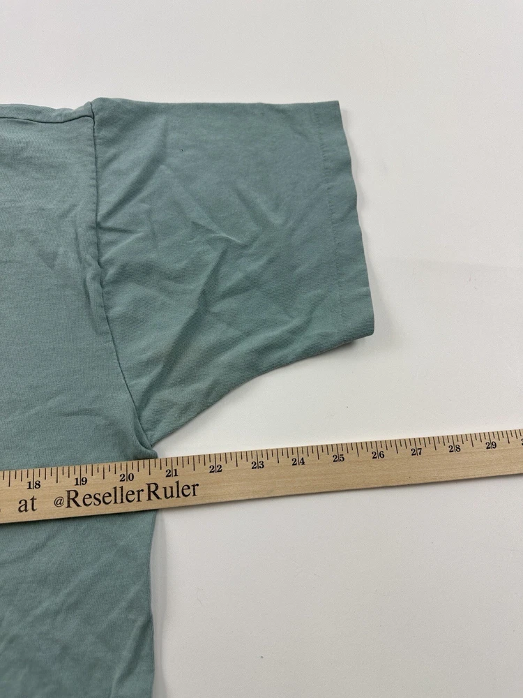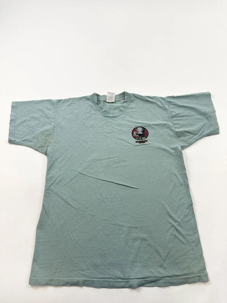 This vintage G-Fest t-shirt, featuring the iconic green Godzilla and the lovable character Stitch, is a must-have for any fan of the classic monster movie genre. The shirt is pre-owned and in excellent condition, with a single stitch and vibrant colors that still pop after all these years. The shirt is a size L and has a regular fit, with a crew neckline and short sleeves. It's made by Fruit of the Loom and is perfect for any casual occasion. Whether you're a fan of the Godzilla franchise or just love unique vintage clothing, this shirt is sure to turn heads. Add it to your collection today!