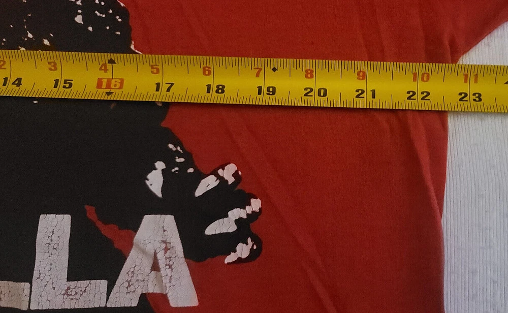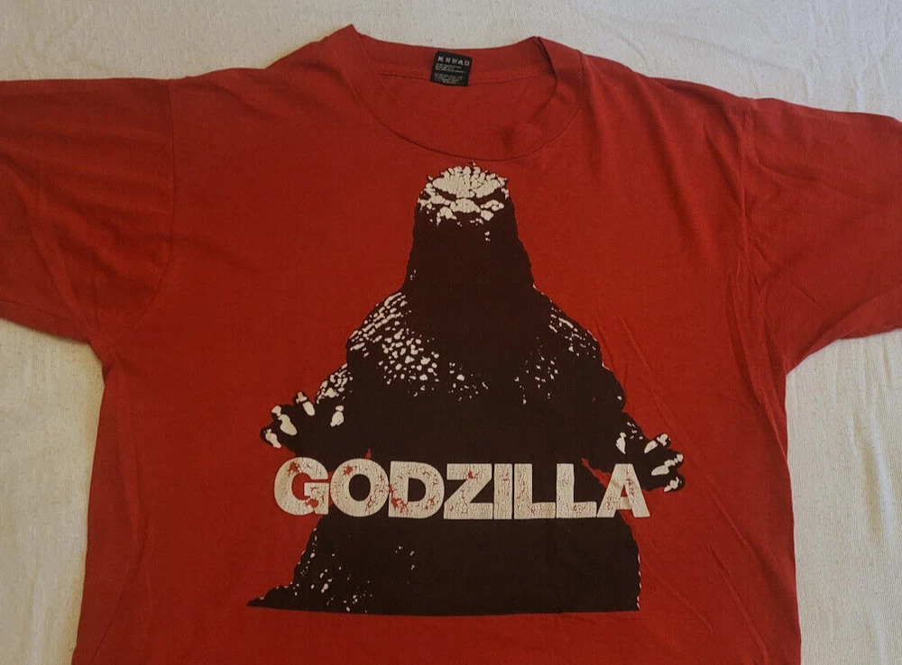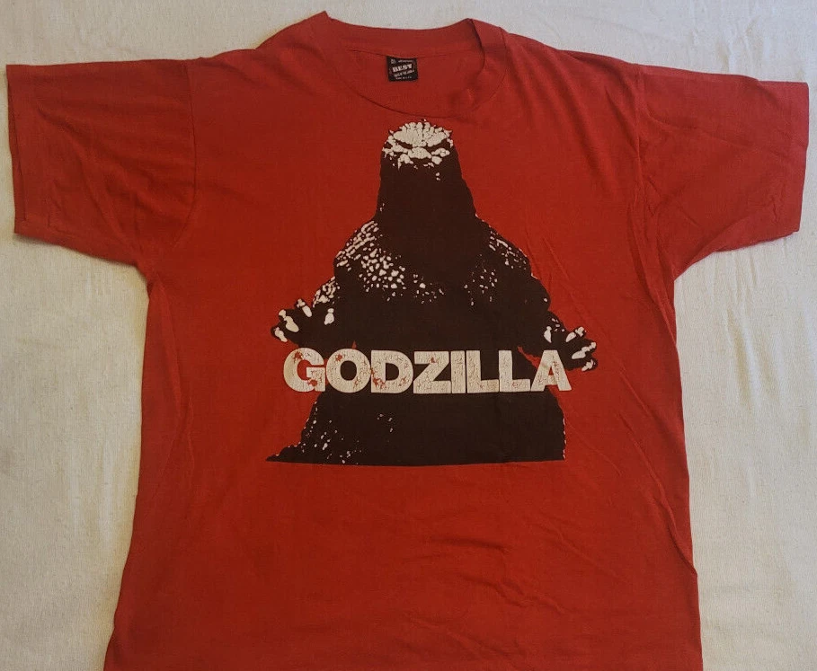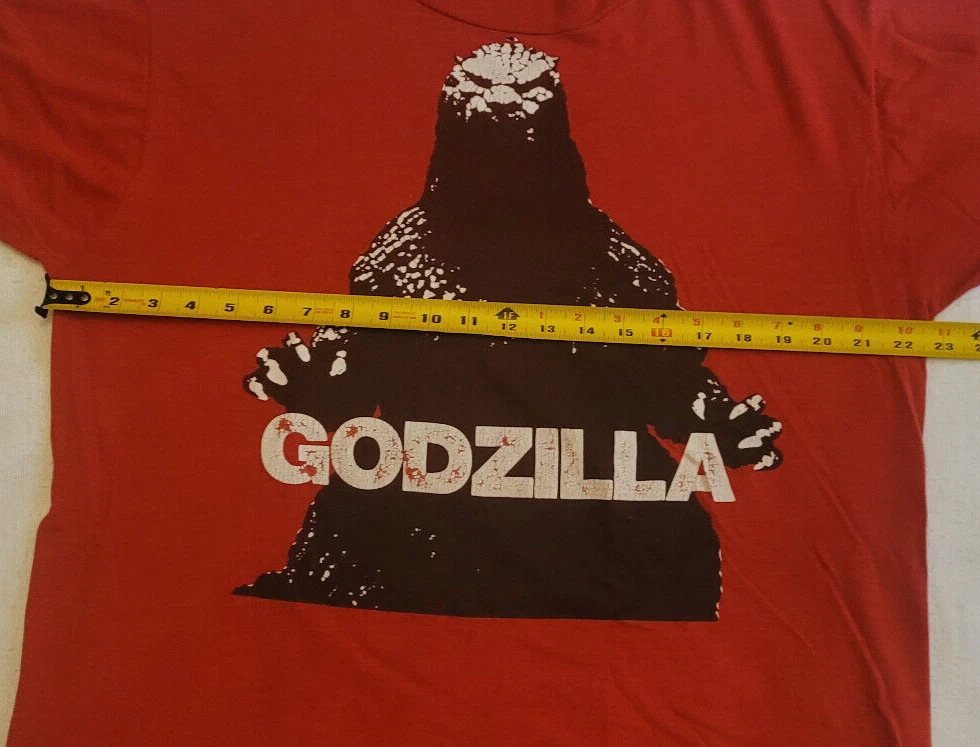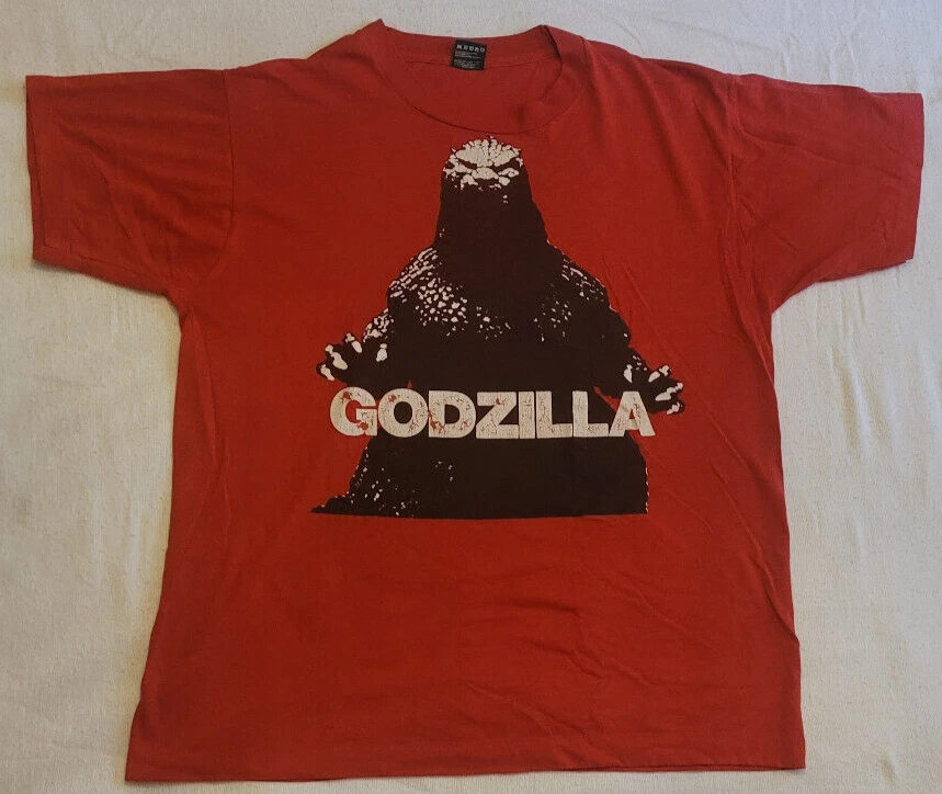 Vintage 90s Godzilla Kaiju T-Shirt Red XL Fruit of the Loom Rare 90s design This vintage 90s Godzilla features a big bold graphic. These shirts are hard to find. This shirt is an XL and measures 24.5" from pit to pit and 29" from the top of the collar to the hem. This shirt has been worn. It is not faded, but the ink is worn and cracking. There is a small stain on the back, which is pictured next to a quarter. Please see the photos. Please let me know if you have any questions or would like additional photos. Thanks for looking!