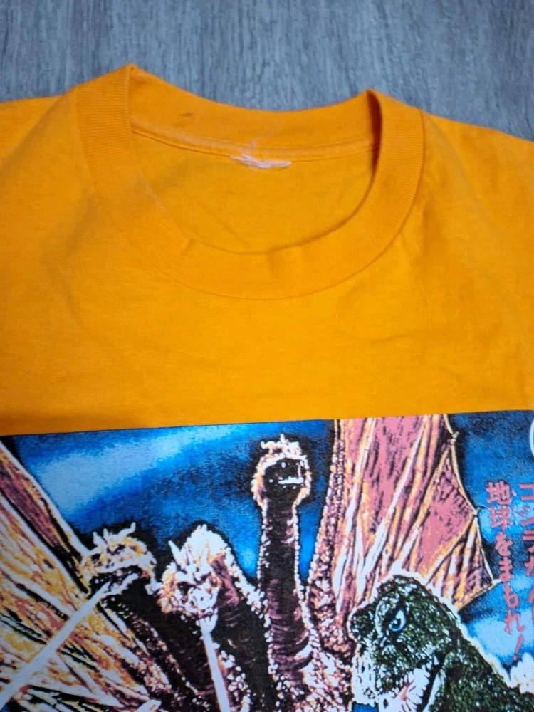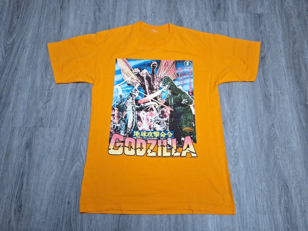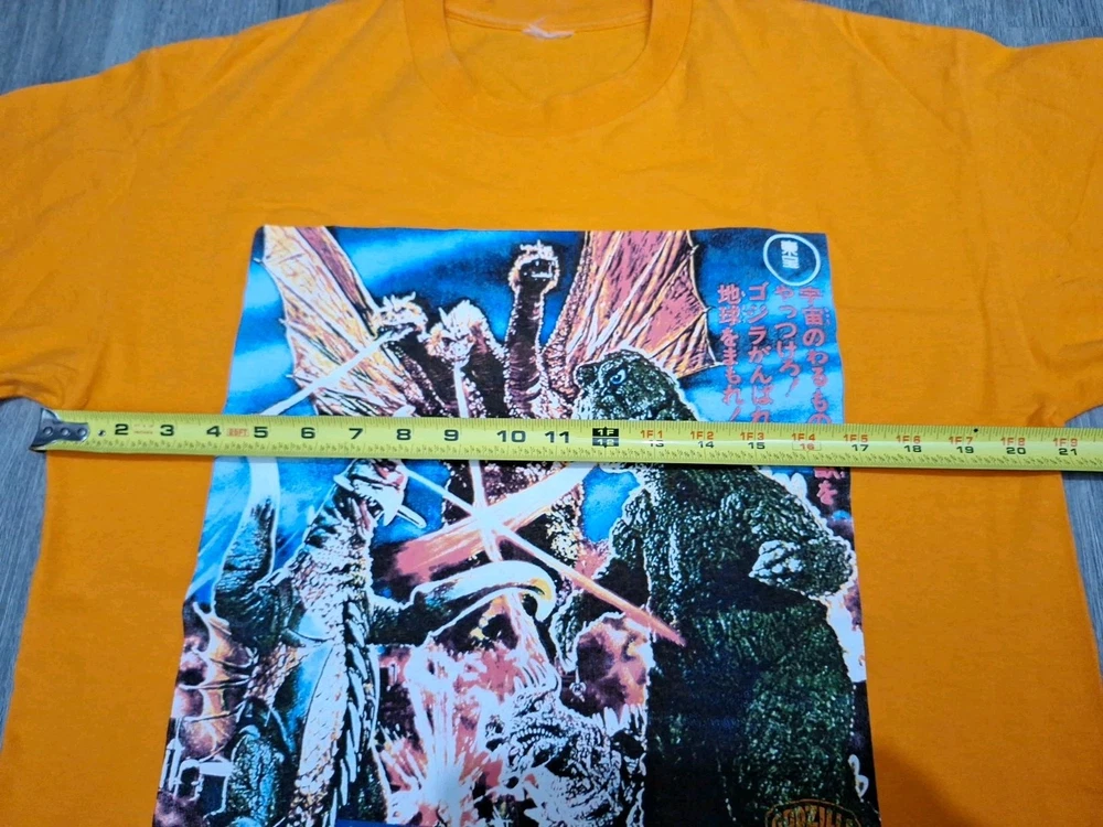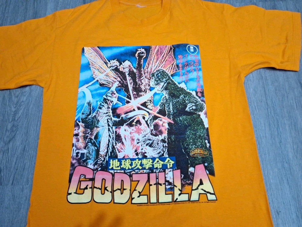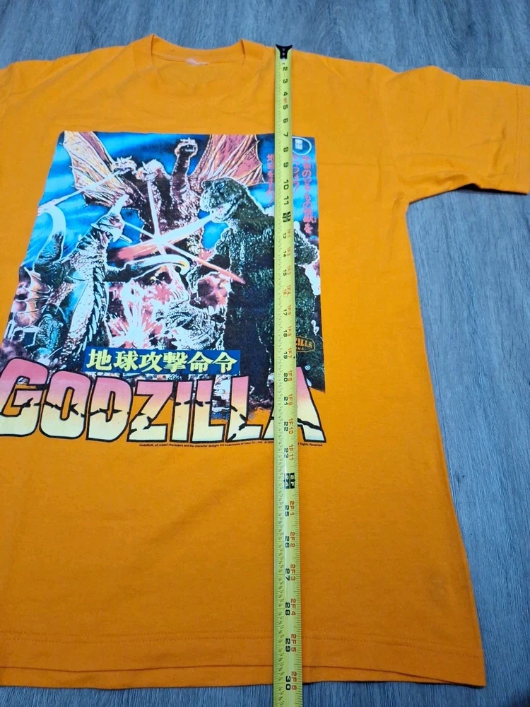 Vintage Godzilla Attacks Japan 2000 Y2K Men's L T-Shirt Orange. Condition used, missing the tag, in nice condition see Pictures 2000. Shipping ups / usps grnd advantage mail.