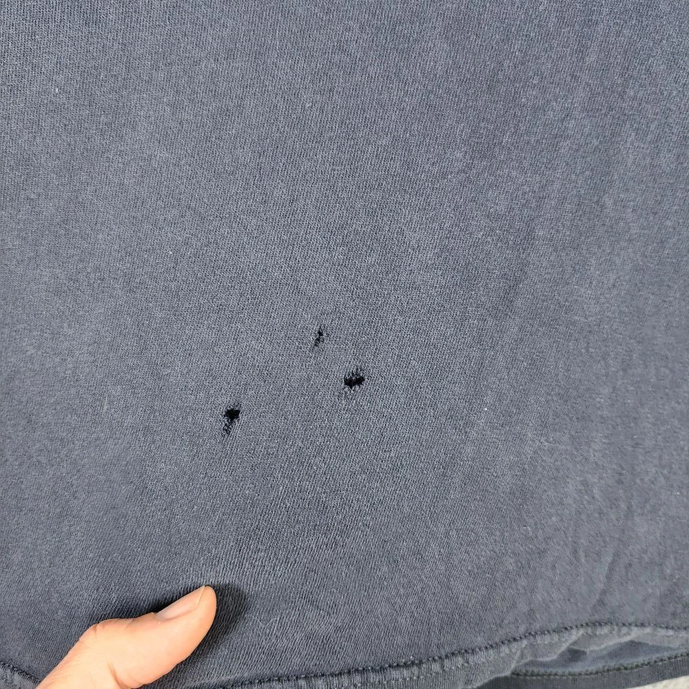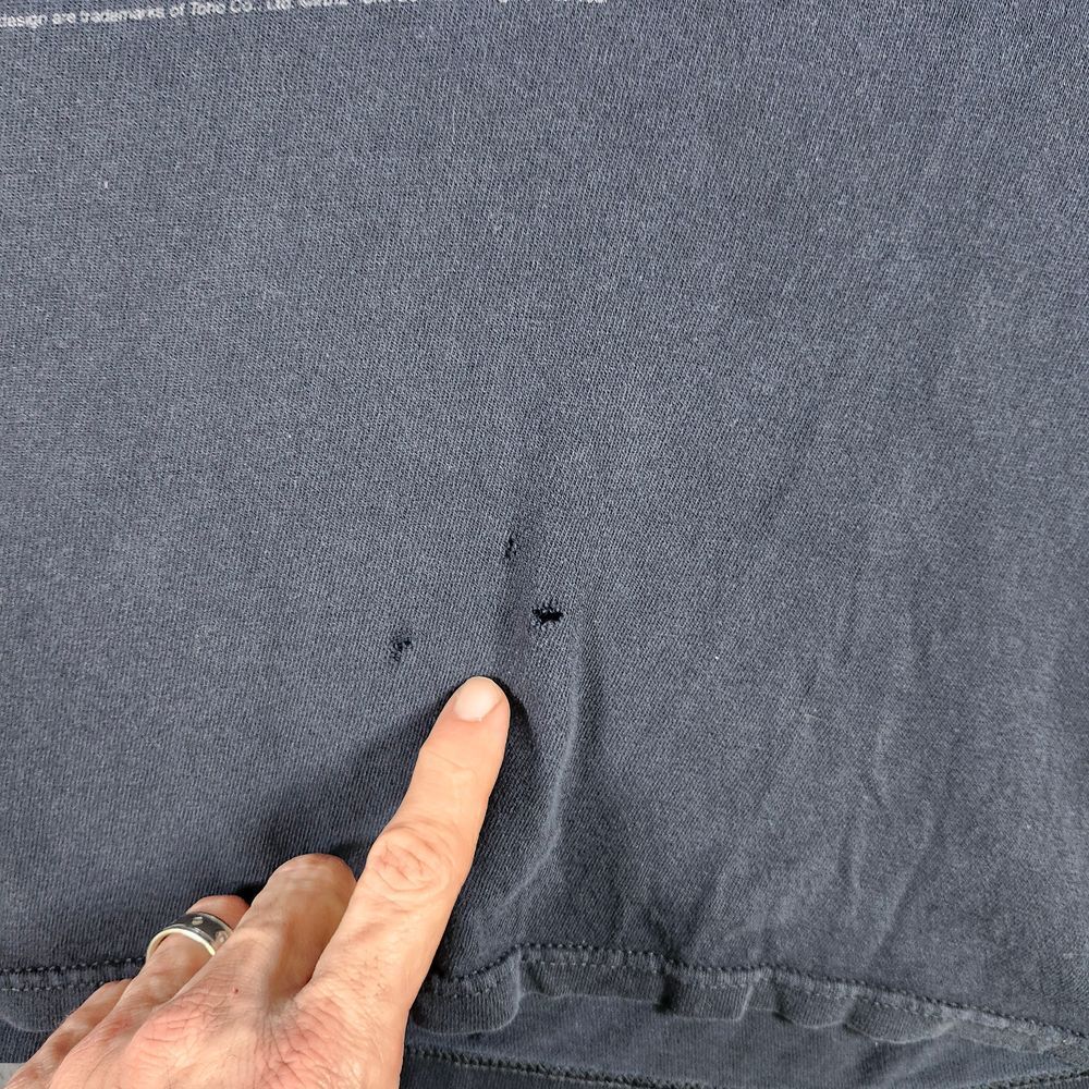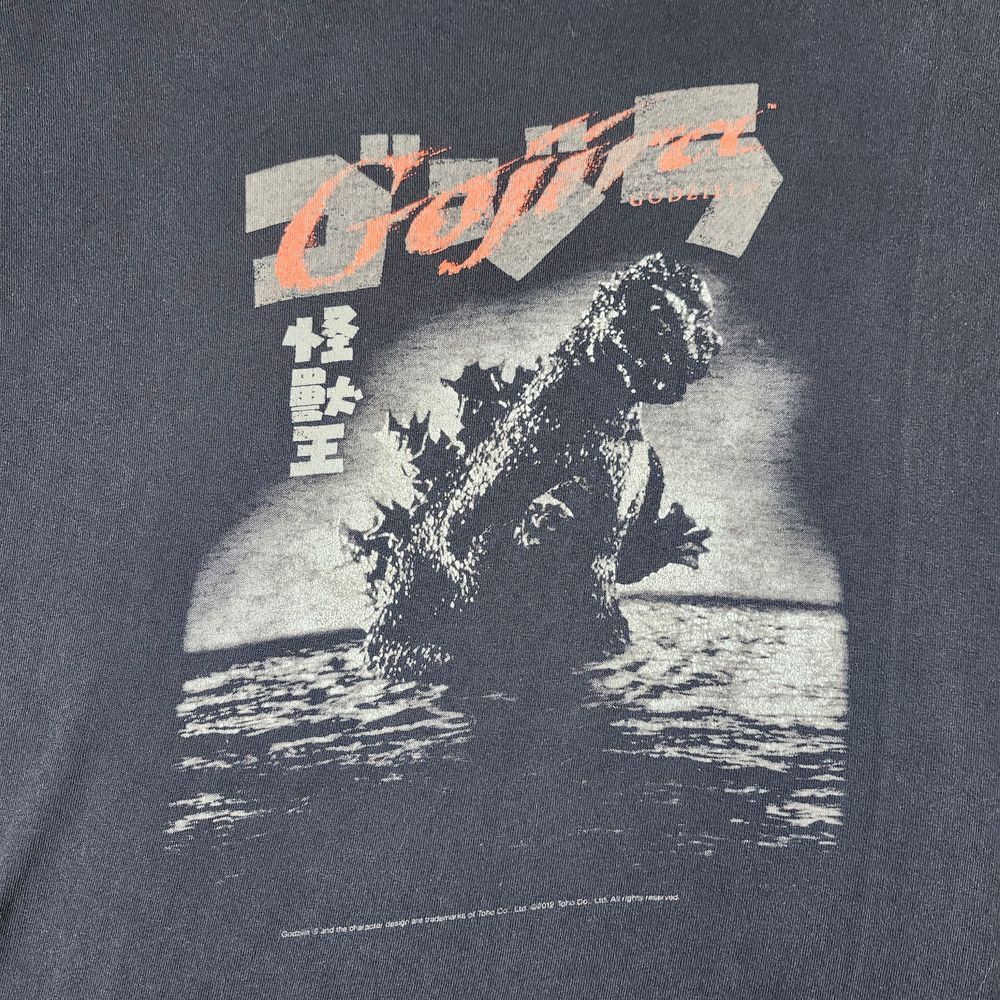 Vintage-style Godzilla graphic t-shirt featuring classic monster movie artwork. Dark gray/charcoal color with distressed print showing Godzilla emerging from water. Some minor wear and small holes present, adding to vintage aesthetic. Decade: 1990s Color: Gray Look: Monochrome Original/Reproduction: Original Keywords: godzilla, kaiju, japanese, monster, movie, graphic tee, vintage, retro, distressed, film, anime all items have been cleaned and disinfected we stand behind all items we sell so please contact us if you have an issue with any order
