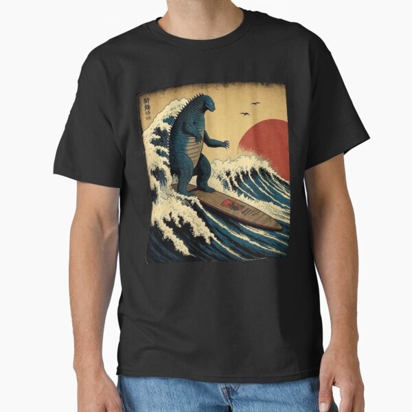 Vintage Godzilla Surfing The Great Wave Ho T-Shirt US/AUS Made Sizes S-2XL