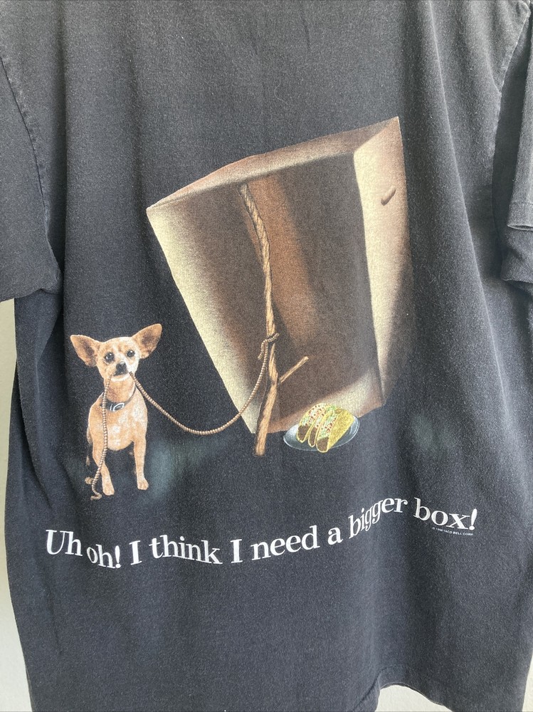 Vintage Godzilla Taco Bell Chihuahua Promo T Shirt Men Size Medium Double Sided. No tag, single stitch vintage t shirt
