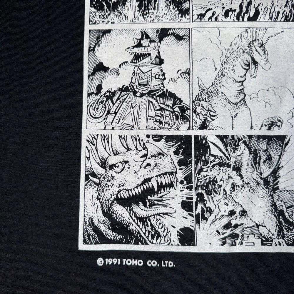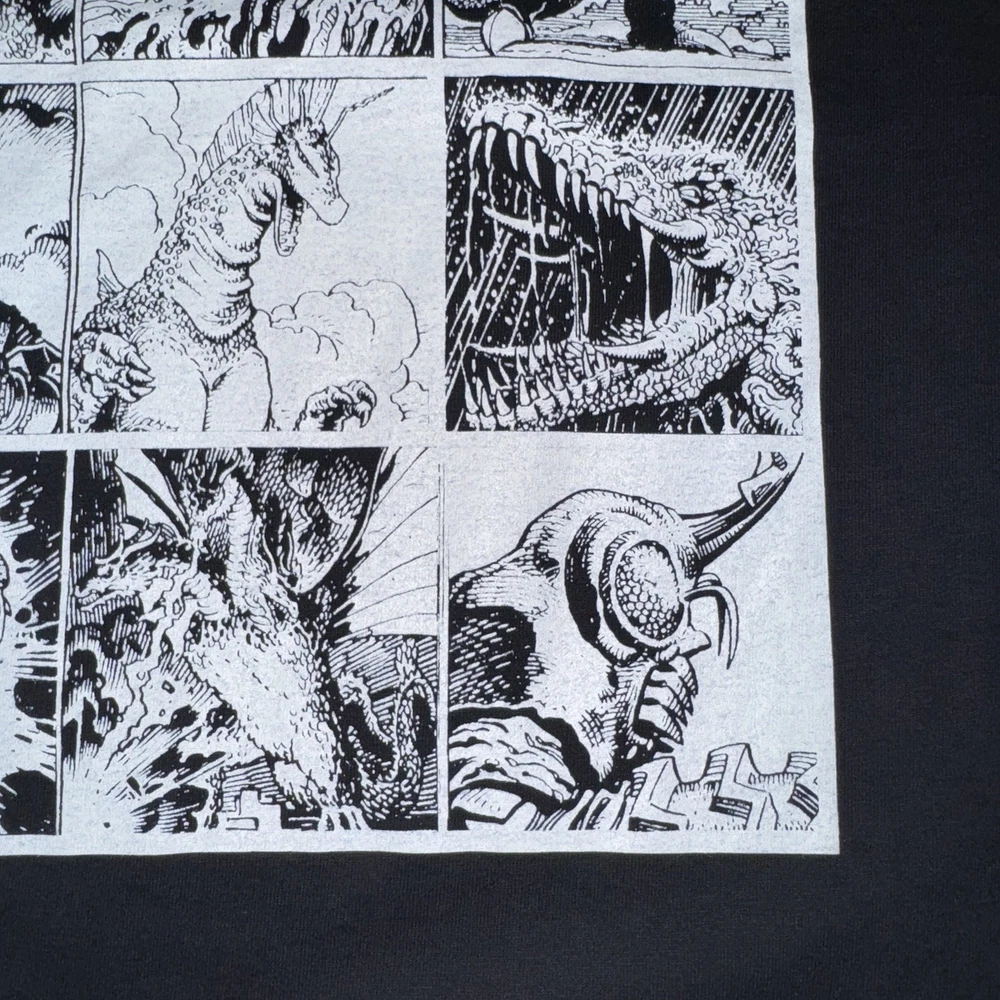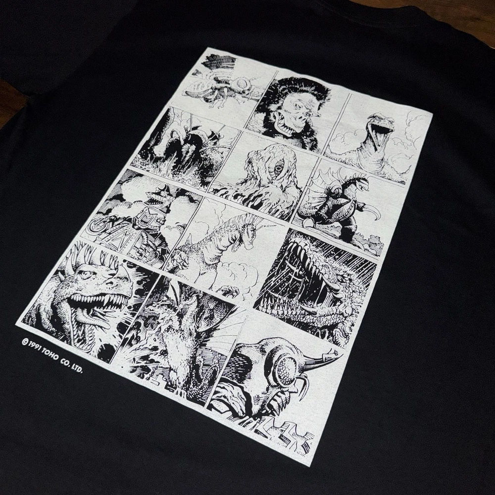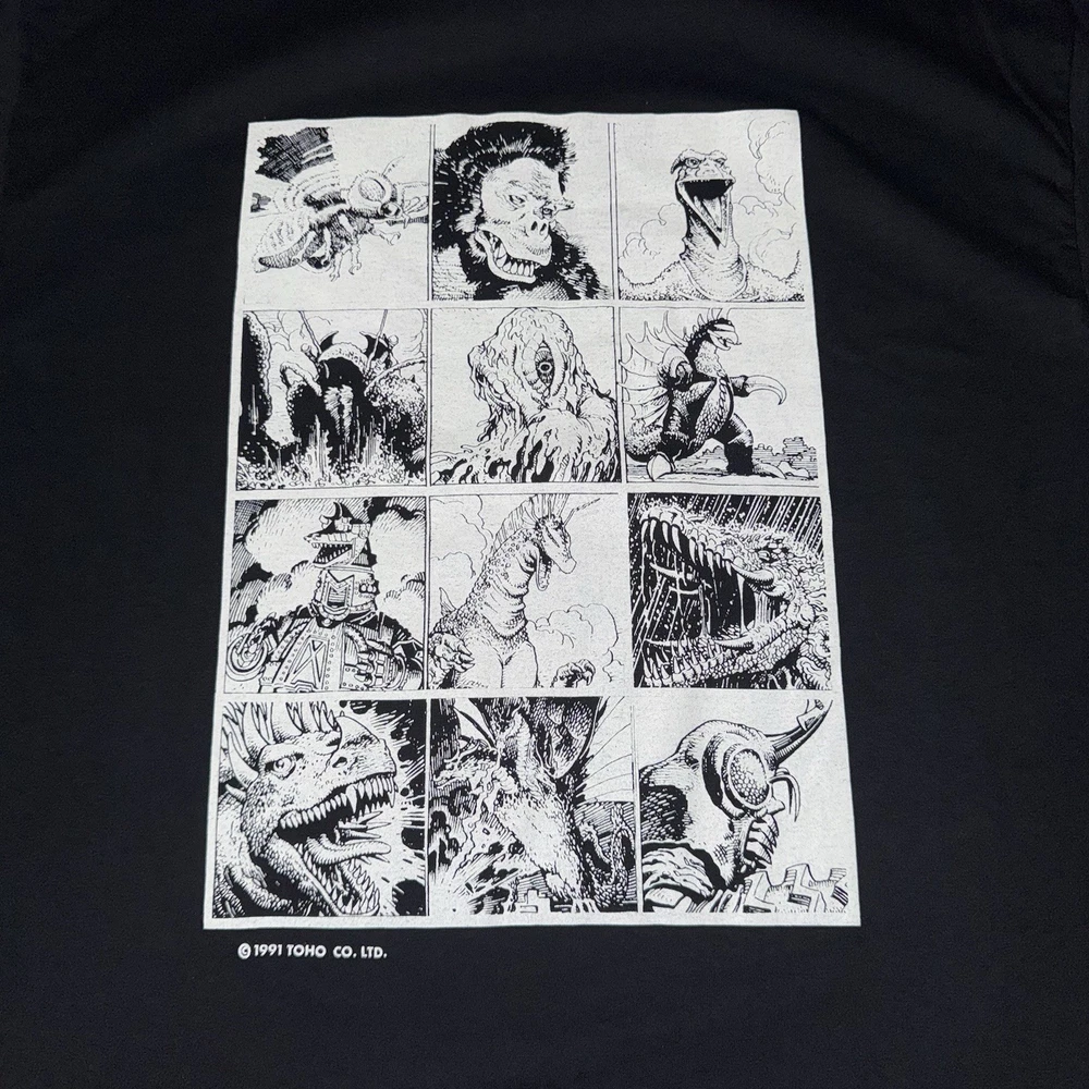 Rare Godzilla Art Comic shirt up for grabs! In almost immaculate condition as well! Has a small marks that would come out in a wash. Super crisp front and back graphics! The front graphic has a small flaw that can be seen in photos. Licensed and dated from 1991. The shirt is tagged as a size XL. Please see photos for measurements and conditions of the garment. Thanks for looking!