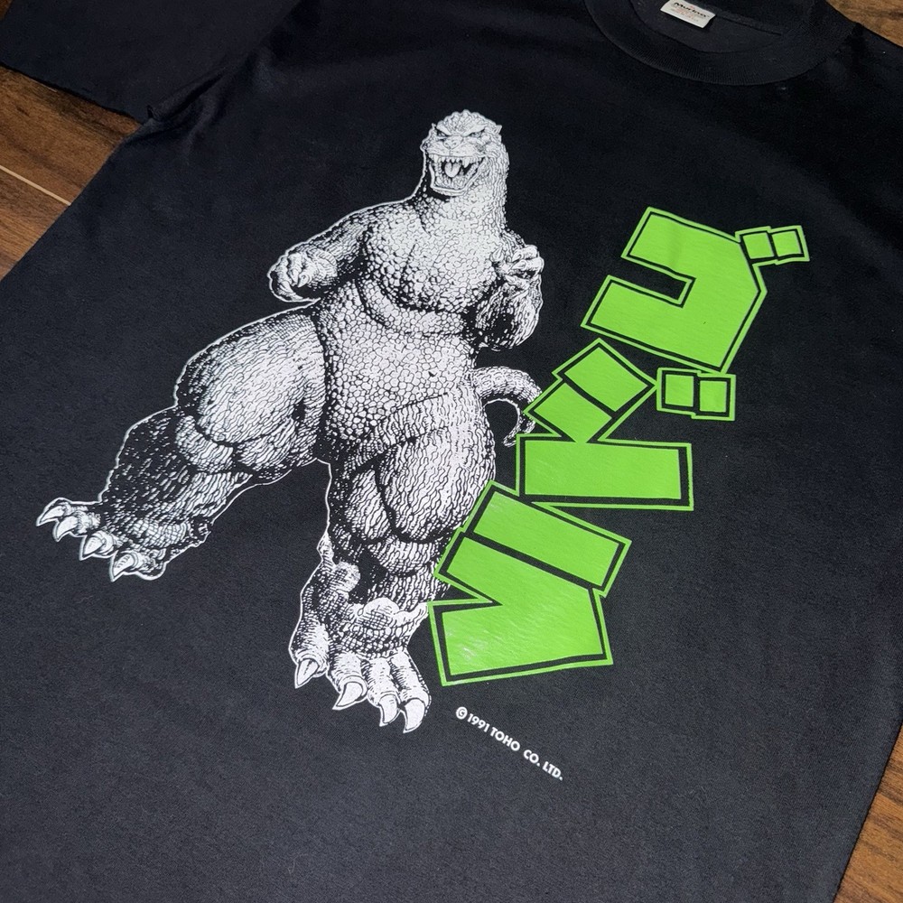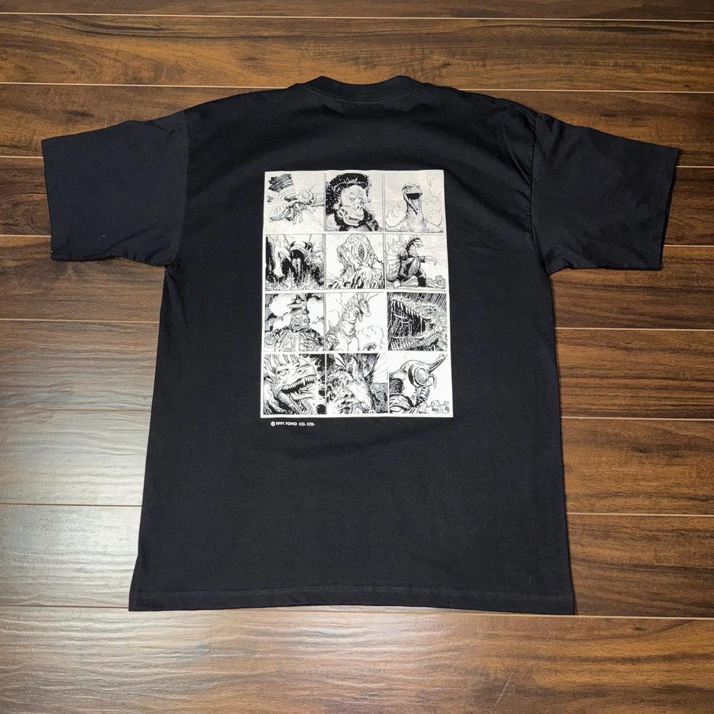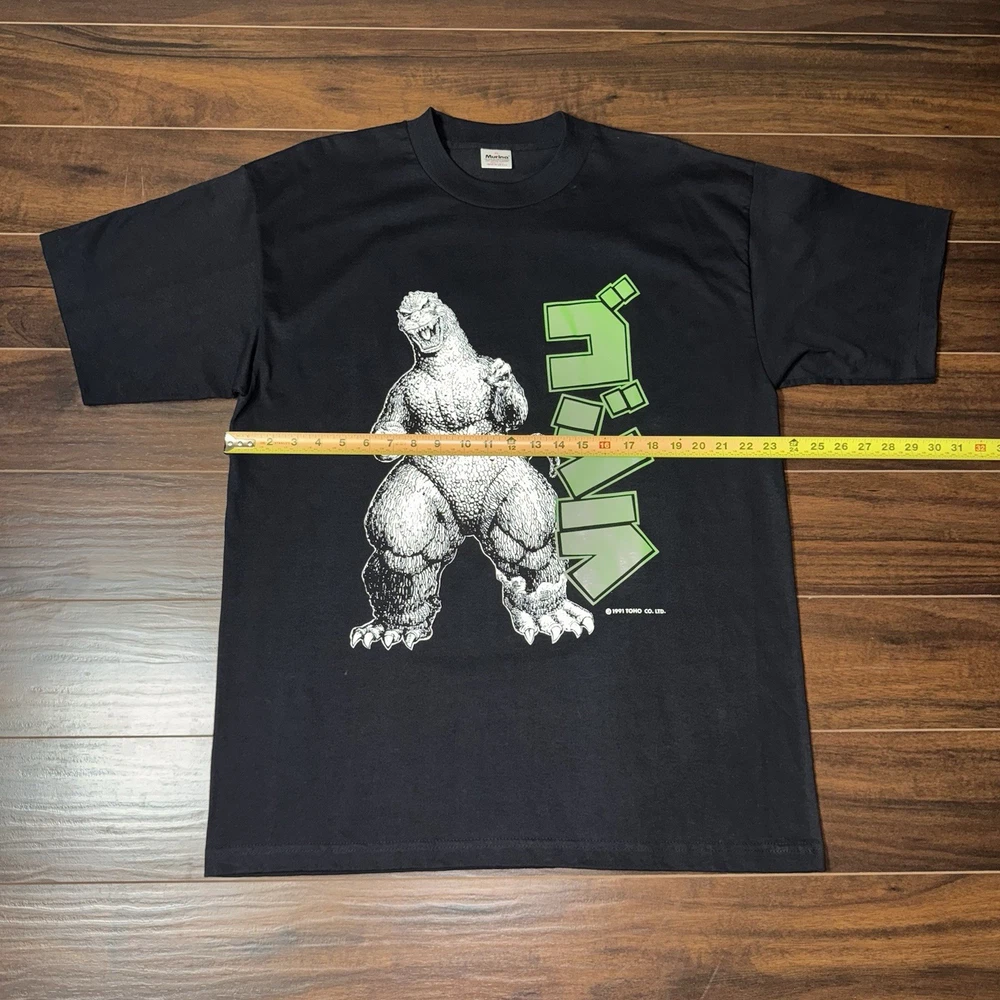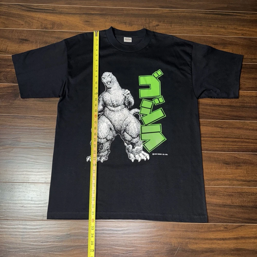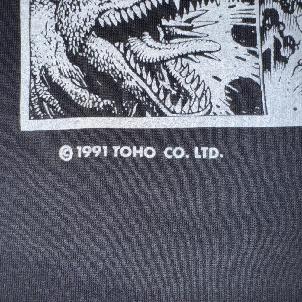 Rare Godzilla Art Comic shirt up for grabs! In almost immaculate condition as well! Has a small marks that would come out in a wash. Super crisp front and back graphics! The front graphic has a small flaw that can be seen in photos. Licensed and dated from 1991. The shirt is tagged as a size XL. Please see photos for measurements and conditions of the garment. Thanks for looking!