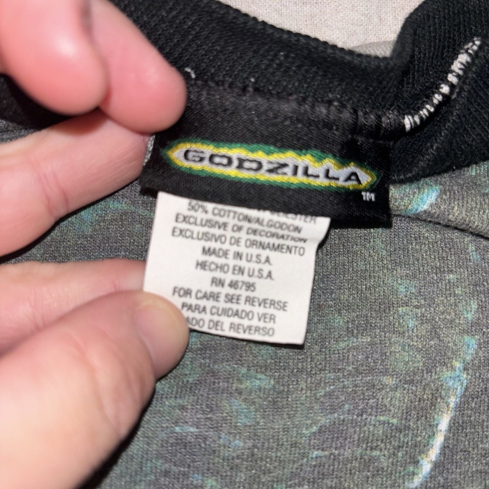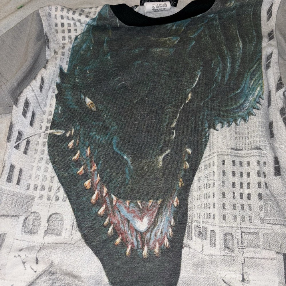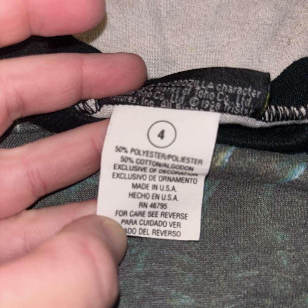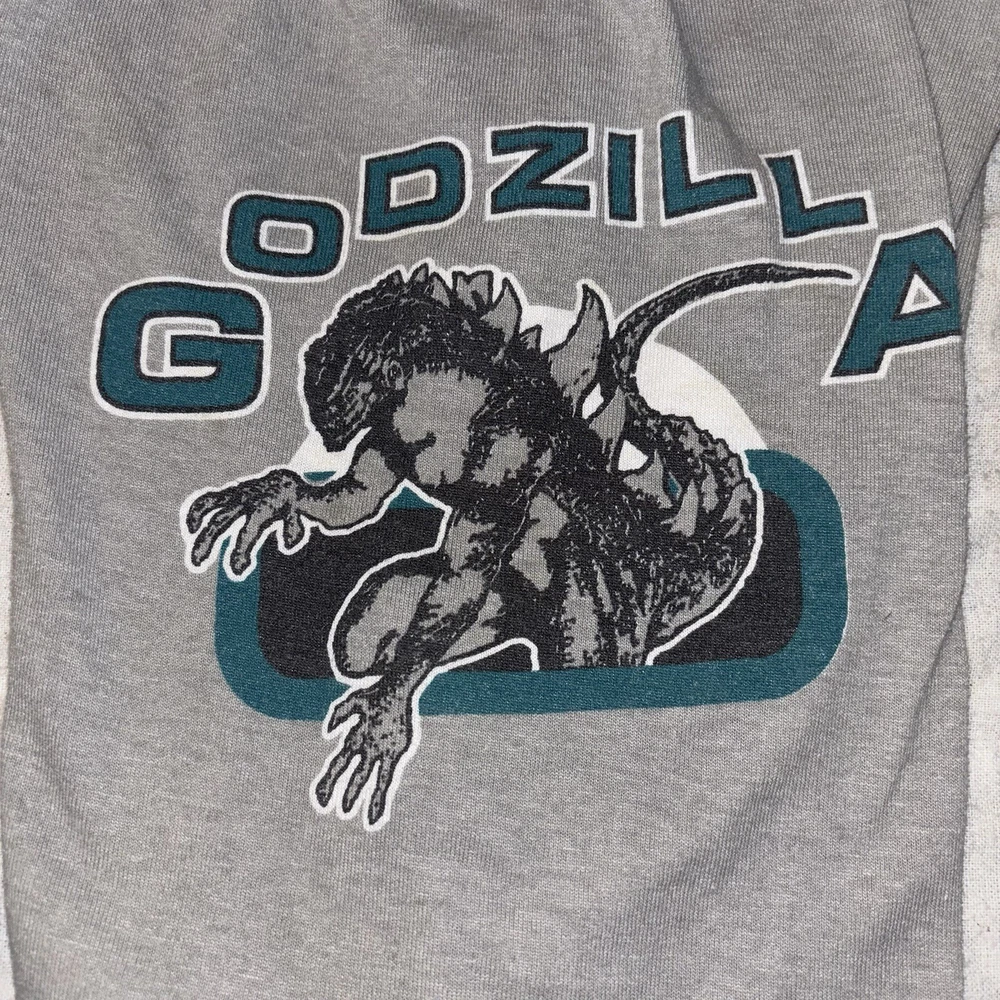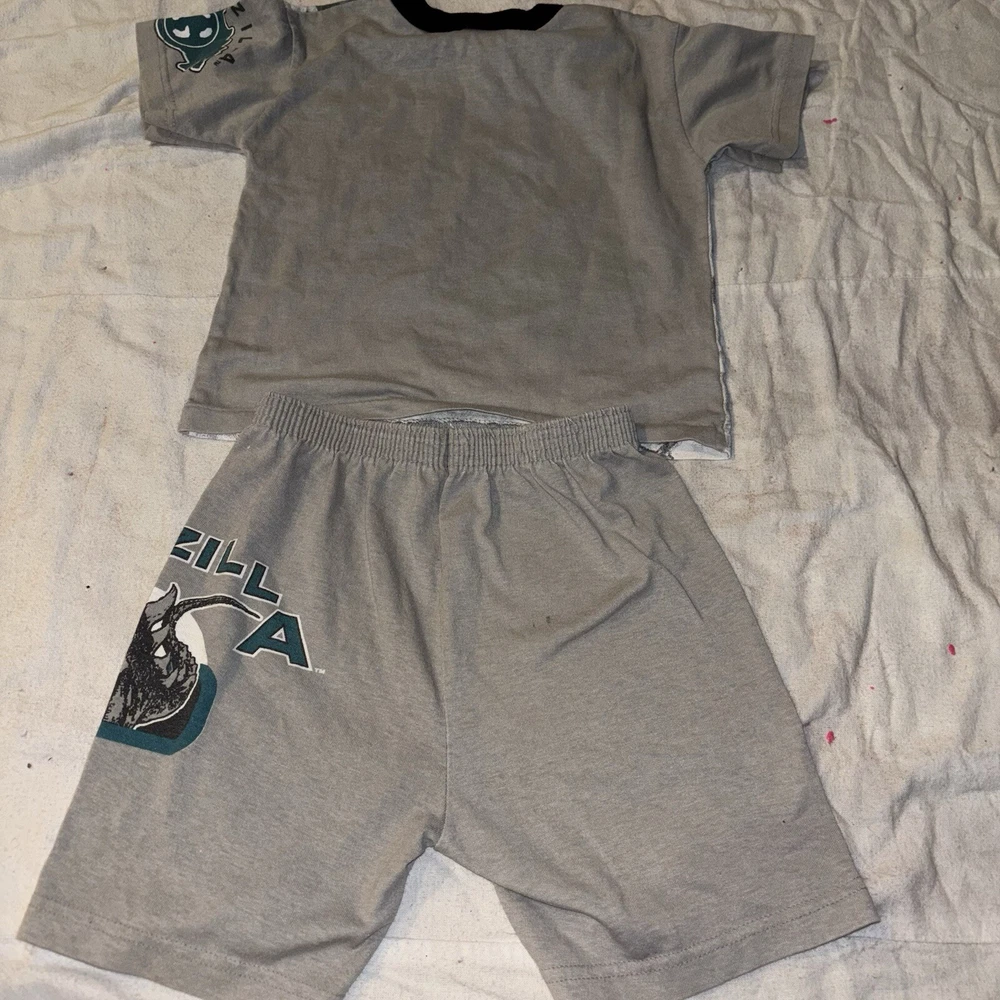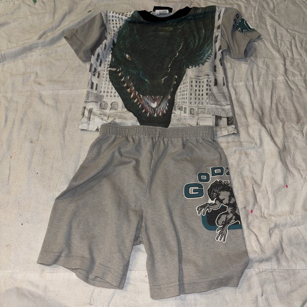 This vintage Godzilla shirt and shorts set is perfect for any young fan of the iconic movie monster. The gray athletic shorts, with a small mark as shown, are comfortable and stylish enough for any active boy. The shirt features a bold Godzilla graphic that is sure to catch the eye of anyone who sees it. The brand is Godzilla and the department is boys, with a size of 4. The shorts are perfect for boys who love to run and play and will make a great addition to any young wardrobe. The shirt is also made of high-quality materials and will last for years to come. Don't miss out on this unique and fun Godzilla shirt and shorts set!