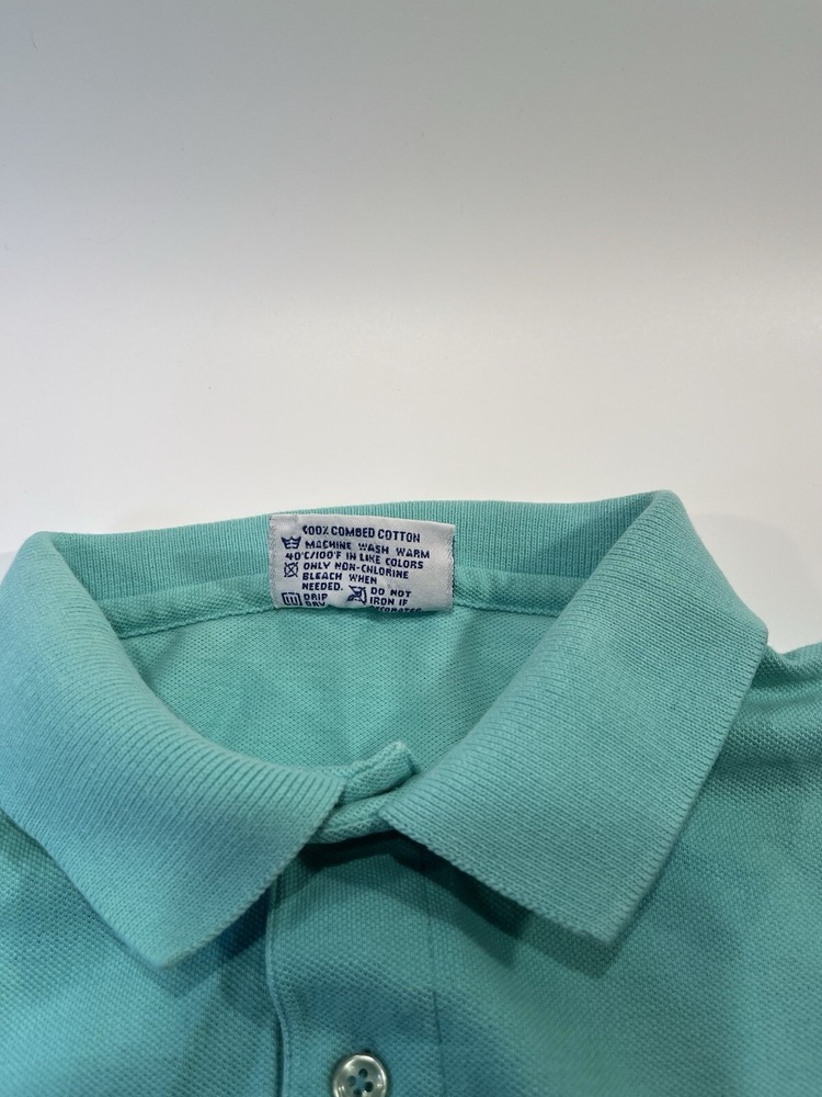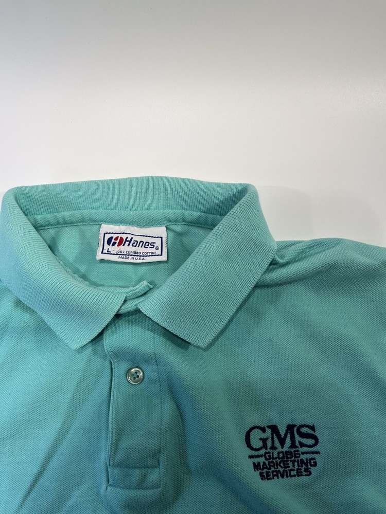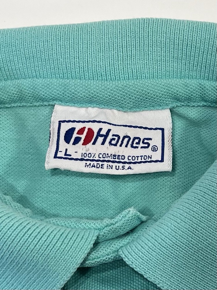 True Vintage Collared Hanes Button Down Shirt! Single stitched on the bottom. Pre-owned with minimal signs of wear/use. No visible stains whatsoever. This vintage Hanes polo collared T-shirt from the early 1980s exudes a classic 80s style with its green color and embroidered logo. Made in the USA from cotton knit fabric, this shirt features a collared neckline and button-up design, perfect for a relaxed yet stylish look. Janes James. The short-sleeve tee is in size L, suitable for men seeking a regular fit and easy-care garment. Handmade with attention to detail, this Hanes ComfortBlend shirt captures the essence of 80s fashion with a touch of nostalgia.