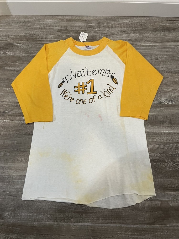 Vintage Haitema We’re One of a Kind 3/4 Sleeve Shirt Sz Youth L Made in USA. THE ANSWER IS "YES, WE DO COMBINE SHIPPING!" THE MORE YOU BUY THE MORE YOU WILL SAVE. PLEASE CHECK OUT THE REST OF OUR STORE AND ADD TO YOUR ORDER. WE WILL SEND A COMBINED INVOICE ONCE YOU LET US KNOW YOU ARE DONE SHOPPING. If there are any questions, please message us. What you see is what you get! The picture you see is actually what you are bidding on. No bait and switch here. We treat people the way we would like to be treated. We love what we do and know what we are doing. Our feedback is awesome so rest assured you will get what you pay for and fast. We ship out the day of or the next day after we receive payment.