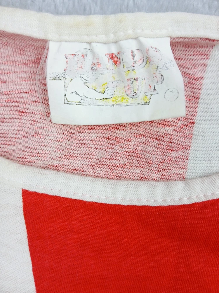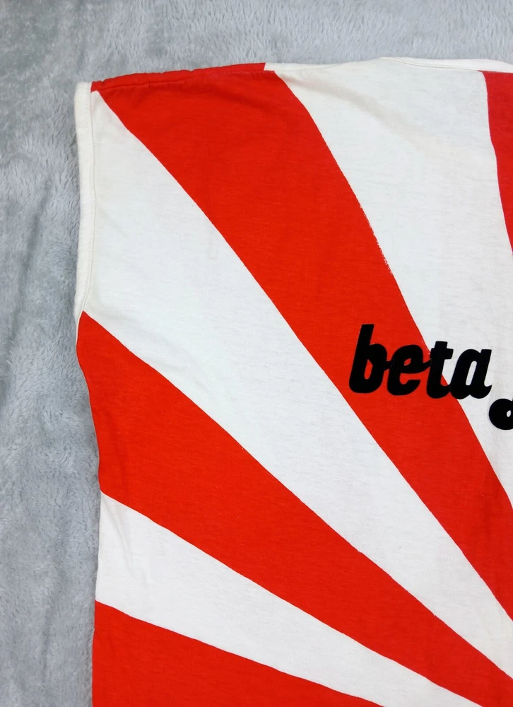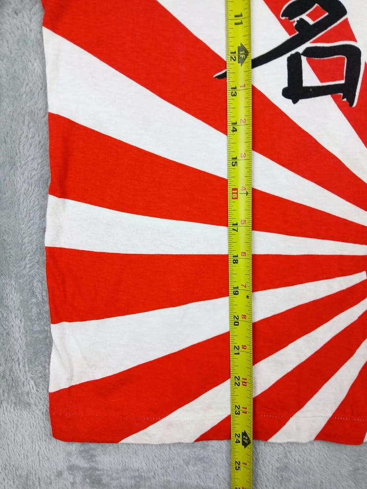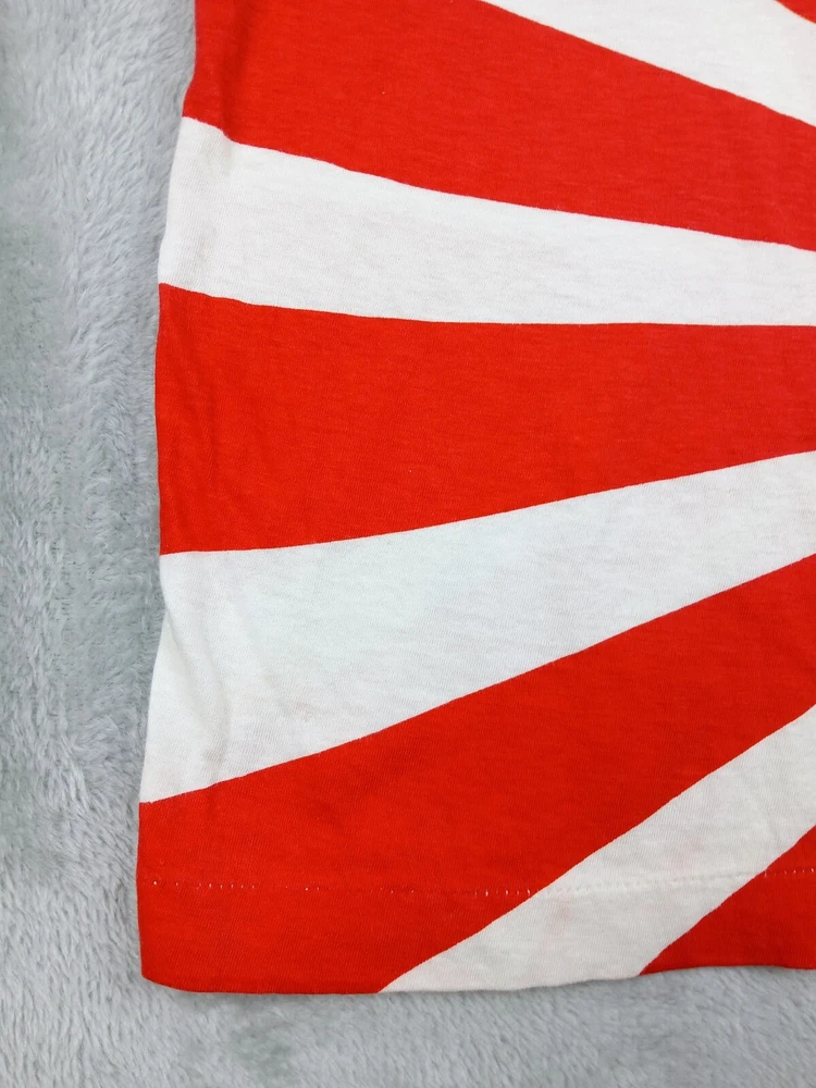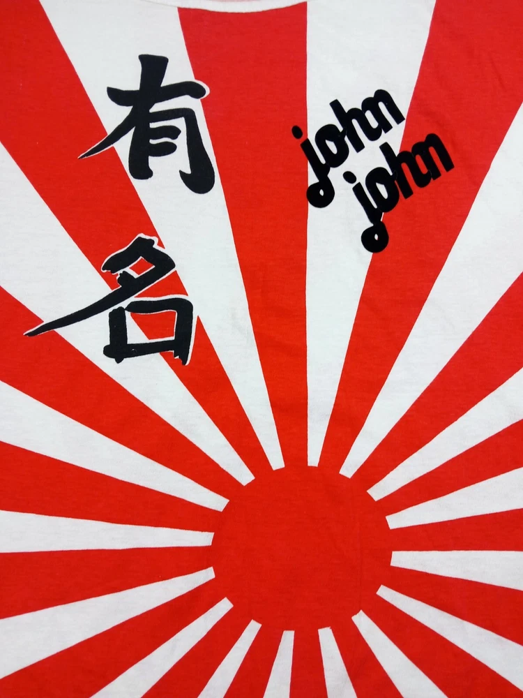 Super Rare, Original Japanese Rising Sun Flag shirt. Muscle Shirt/Tank Top. Time period is from the late 70's early 80's. Acquired from the original owner, He got it in Japan on vacation as Souvenir. The shirt was customized with "John John" on front side and "Beta juliet" on backside. Single stitch in great condition Minor flaw are small wash dot on bottom corner of shirt and a little discolor on neck. Shirt was stored and preserved very nicely. Such a great all over print on this tee! unisex. 100% cotton. tagged fits a small/medium. Measurements are photographed.