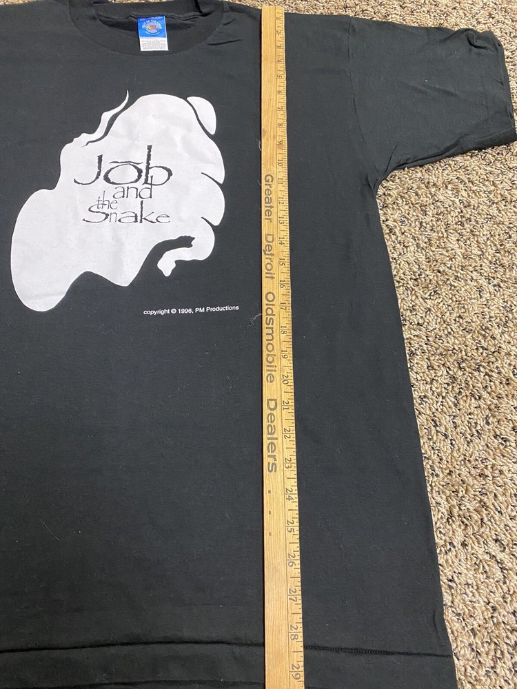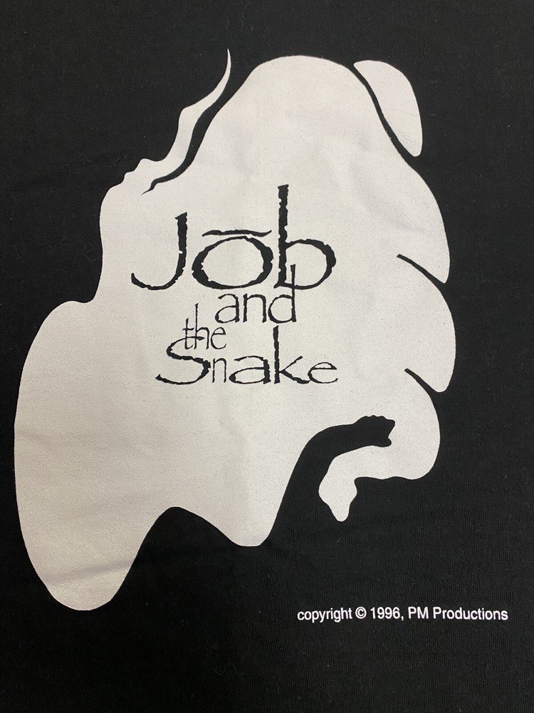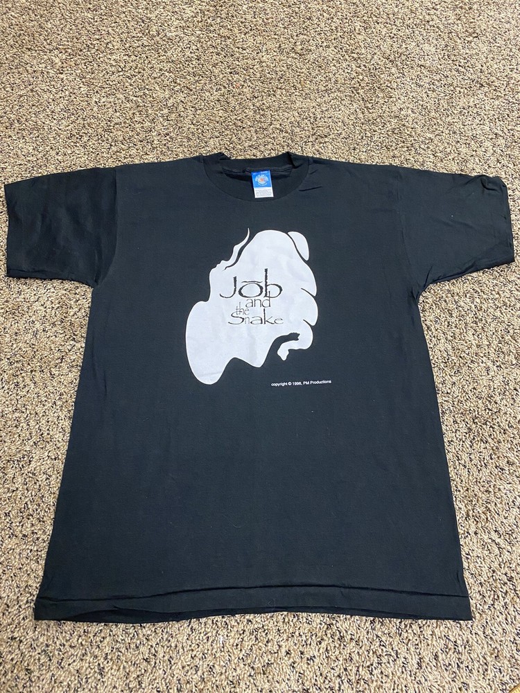 Vintage Job & The Snake Musical Broadway 1996 Men's T-Shirt Size L Large Shirt in good preowned condition. Slight cracking on graphic.