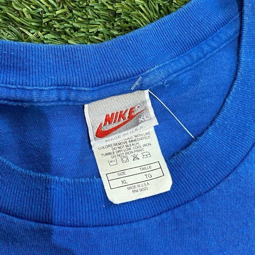 Tag: XL Made in USA Measurements: 22 x 27.5 Recommended size: L Final sale. Minor wear of a few faint spots on the front. Shirts been washed. This vintage Nike t-shirt from 1992 features a thrilling Godzilla Vs Charles Barkley graphic. The shirt is made of 100% cotton and comes in a size XL. The blue color and vintage style make it a must-have for any Nike or vintage clothing enthusiast. The shirt is in great shape and has a tag still attached. This unique graphic tee is perfect for men who love vintage clothing and want to add a touch of Nike history to their wardrobe.