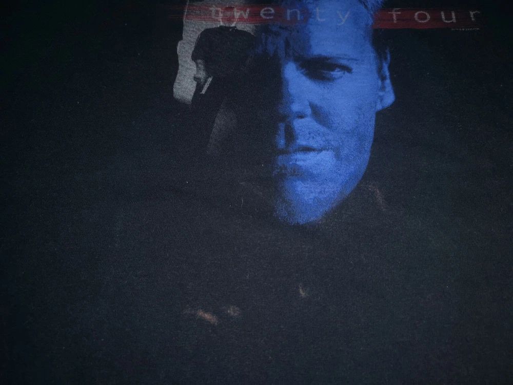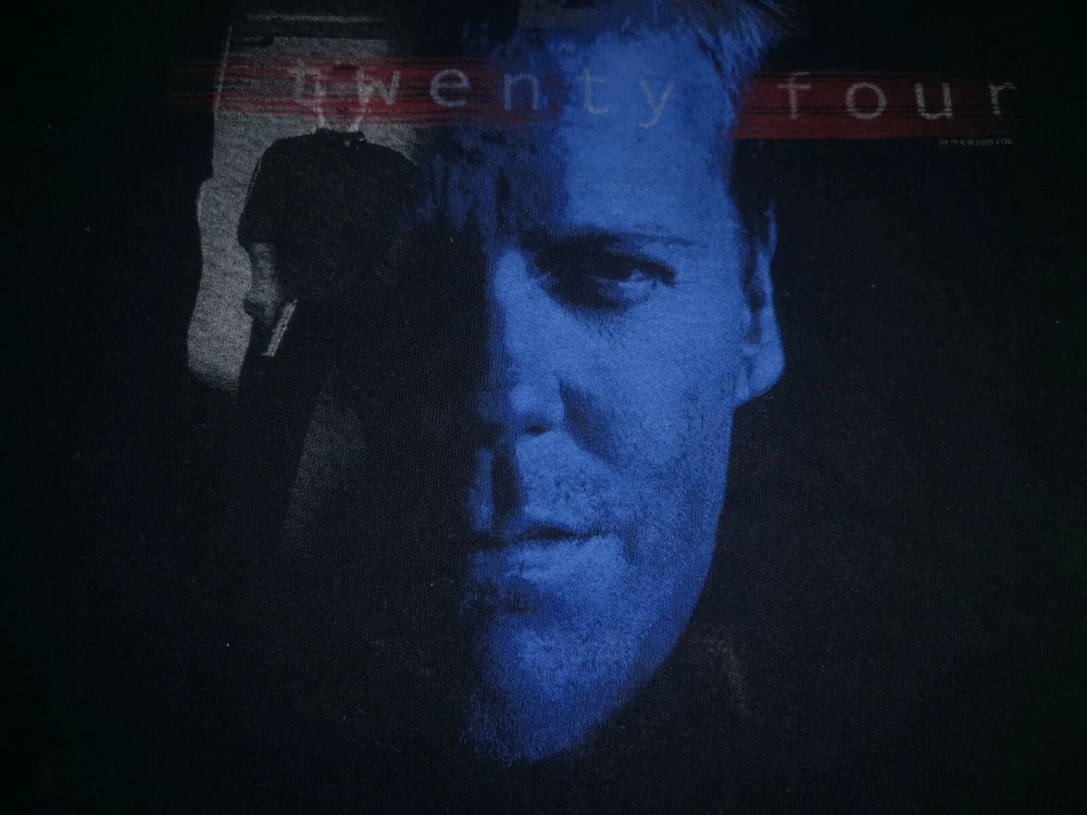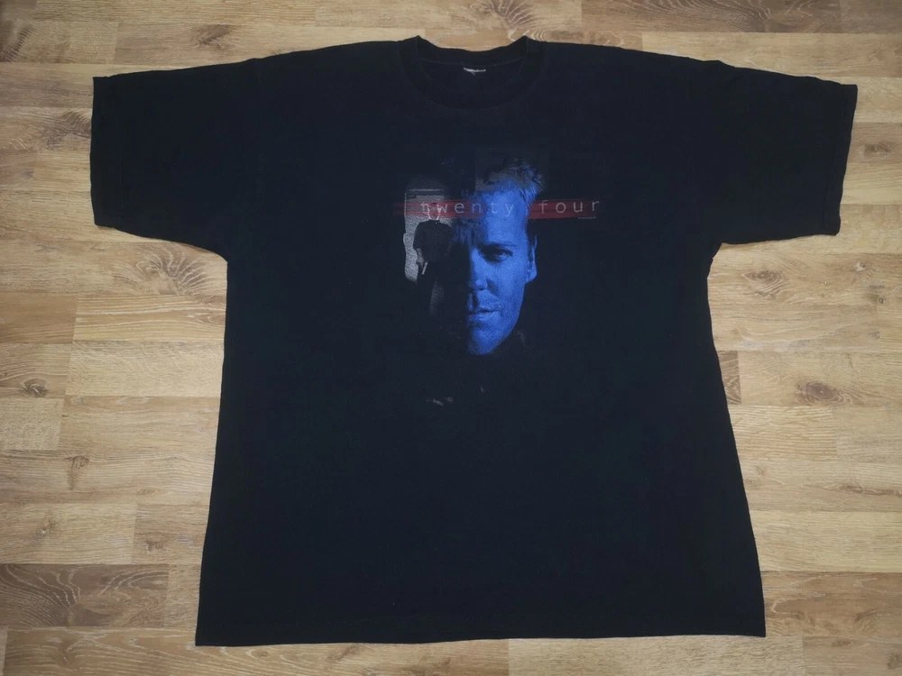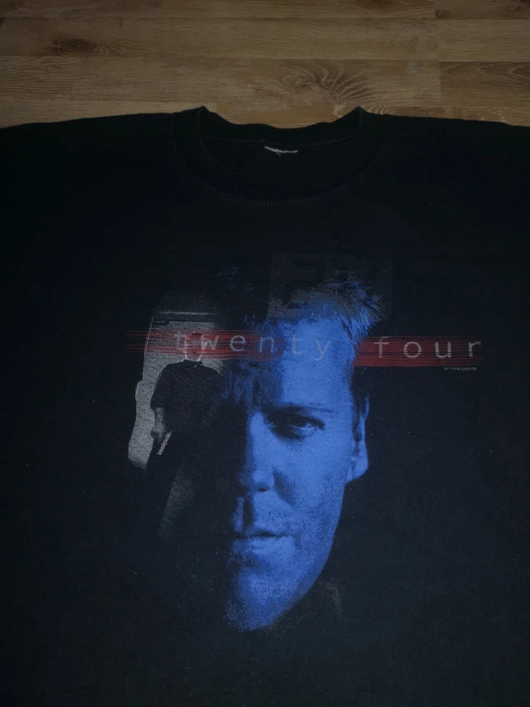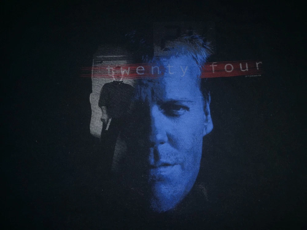 Rare! Official True Vintage OG 2000's American Action Drama Twenty Four 24 TV Series 2005 Fox Promo T Shirt Kiefer Surtherland Jack Bauer Please noted that this t shirt is a true vintage / used / pre-owned. Don't expect the item to be like new. There are signs of worn. Slightly faded black color t Shirt. A pinhole spotted at the bottom part of the t shirt. Stains spotted below the graphic. Discoloration spotted. Overall still in good vintage condition. Please refer pictures attached for more details on the t shirt. Missing Tag. 100% Cotton. Size Fits Modern 2XL. Armpit to Armpit 24.5". Shoulder to Bottom 29.5". Horror Cult Movie Film Dracula Poster Halloween Black Sabbath Demon Knight Blue Velvet The Thing Chucky Freddy Krueger Nightmare On The Elm Street Night of The Living Dead Ghosts Damned Creepy Sci Fi Frankenstein Monster Scary Raptee Natural Born Killers Titanic Raptee Tupac Shakur NWA The Clash Anime Marvel Ghost In The Shell Skinhead Punk Oi Full Print All Over Print Fifth Column OG Roger Corman RHCP Bill Coyne TSOL The Vandals Pet Shop Boys Cult Horror The Rock Randy Dwayne Johnson Cactus Jack Folley Kane Hulk Hogan Rikishi Booker T Kurt Angel Mick Steven Anderson Raw