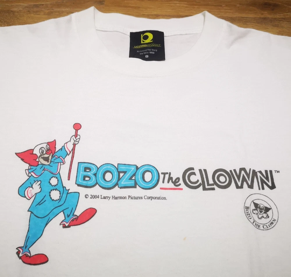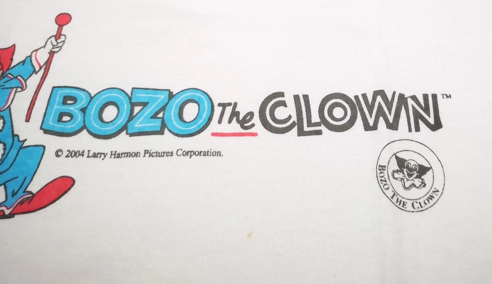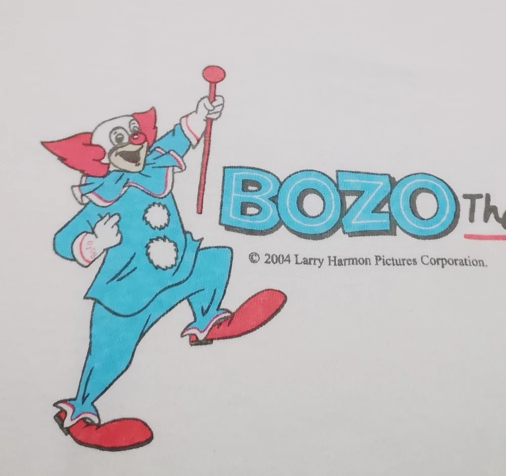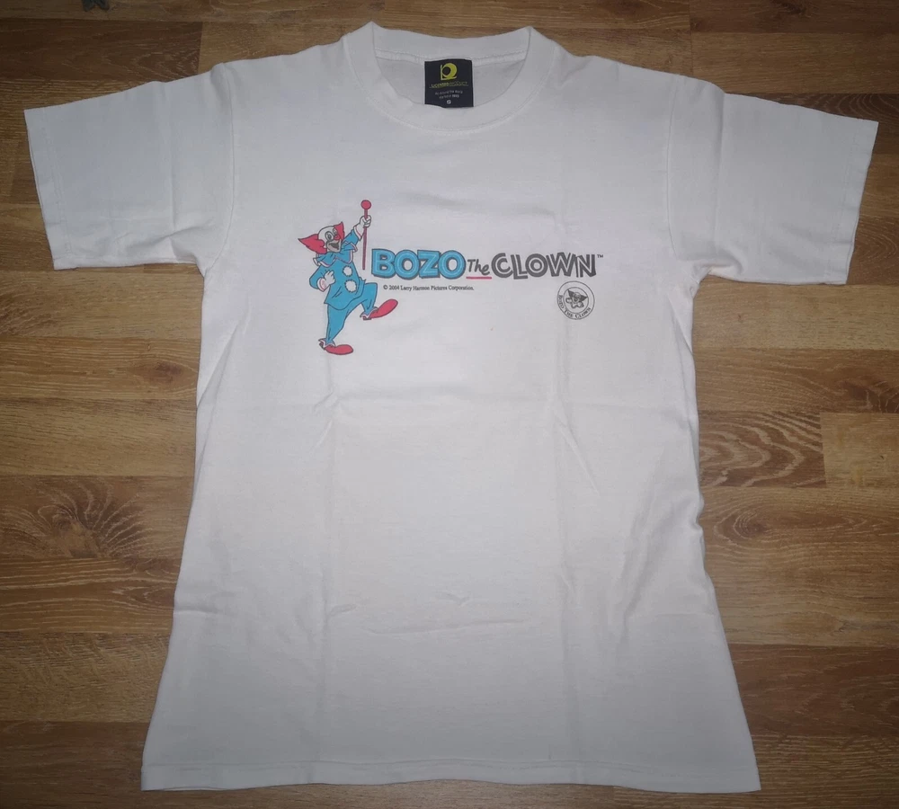 Rare! Official Licenses Merchandise True Vintage OG 2000's The Legendary American World Famous Clown, Bozo The Clown 2004 Larry Harmon Pictures Corporation Promo T Shirt Please noted that this t shirt is a true vintage / used / pre-owned. Don't expect the item to be like new. There are signs of worn. No obvious holes spotted. Minimal light stains spotted below "the" wording. Overall still in good vintage condition. Please refer pictures attached for more details on the t shirt. Licensed Product Tag. 100% Cotton. Size Small On Tag. Armpit to Armpit 17.5". Shoulder to Bottom 26.5". Shoulder 17.5". Sleeve Length 7.5". Hem 17.5". $45 OR BEST OFFER Horror Cult Movie Film Dracula Poster Halloween Black Sabbath Demon Knight Blue Velvet The Thing Chucky Freddy Krueger Nightmare On The Elm Street Night of The Living Dead Ghosts Damned Creepy Sci Fi Frankenstein Monster Scary Raptee Natural Born Killers Titanic Raptee Tupac Shakur NWA The Clash Anime Marvel Ghost In The Shell Skinhead Punk Oi Full Print All Over Print Fifth Column OG Roger Corman RHCP Bill Coyne TSOL The Vandals Pet Shop Boys Cult Horror The Rock Randy Dwayne Johnson Cactus Jack Folley Kane Hulk Hogan Rikishi Booker T Kurt Angel Mick Steven Anderson Raw