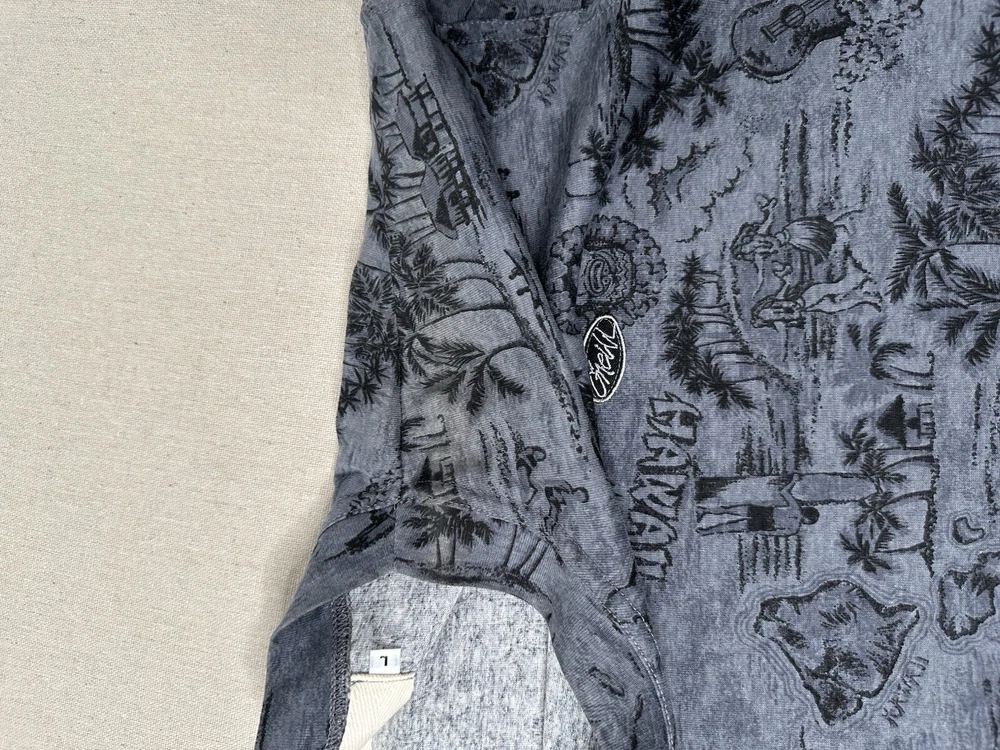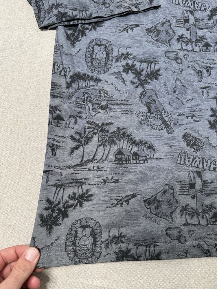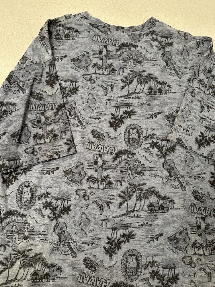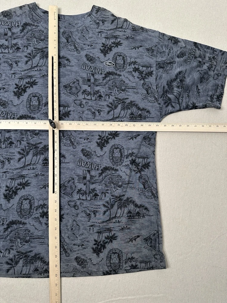 Just got this awesome vintage surf shirt and it's even better in person! The all-over print is super vibrant and the fit is perfect - roomy and comfortable like described. The minor storage marks are barely noticeable and it's in amazing condition for its age. Such a cool piece of 90s nostalgia!