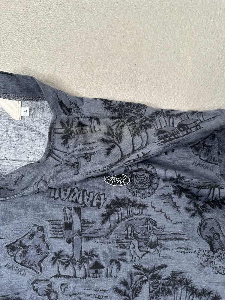 Size large. Fits like a men’s XL. Late 90s O’Neill T shirt. Has very small wear on shoulders from storage. I have not tried cleaning. Overall shirt in good condition for the age. Please refer to photo...
