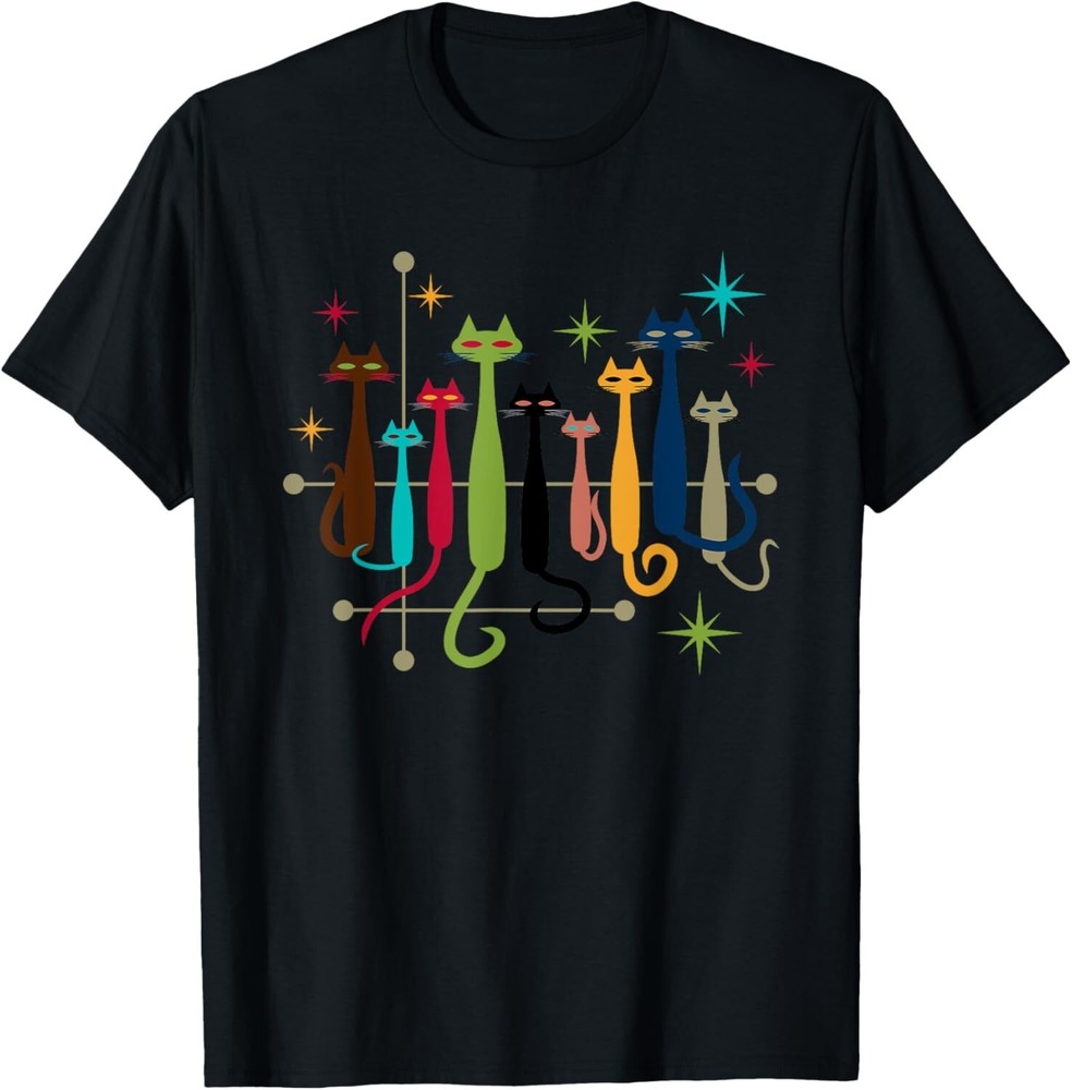 Vintage Retro Mid-Century Modern Look Cats 50s 60s Style T-Shirt FREE SHIPPING! FAST DELIVERY! DOMESTIC SHIPPING! Delivery from 3 to 7 business days! Features and further details Stay classy and unique with custom cotton and a pretty thick t-shirt. The print on demand t-shirt is designed with a crew neckline, short sleeves for better comfort, taped neck and shoulders, and double-needle sleeves for enhanced durability. It?s a good choice for both men and women. Material: 5.3 oz/yd², Dark Heather, Graphite Heather, Heather Navy, Heather Red, Tweed (50% cotton, 50% polyester); Sport Grey, Antique Irish Green, Antique Orange, Antique Sapphire (90% Cotton/10% polyester), Ash (99% Cotton/ 1% Polyester), All Others (100% cotton). Classic, unisex fit - Comfortable to wear and suitable for anyone to wear. Non-stitched, classic width, rib collar. Printing technique: Direct to Garment. Color: Ash, Black, Charcoal, Dark Chocolate, Dark Heather, Forest Green, Gold, Ice Grey, Irish Green, Kiwi, Light Blue, Light Pink, Maroon, Military Green, Navy, Orange, Purple, Red, Royal, Sand, Sport Grey, Tropical Blue, Turf Green, White, Antique Irish Green, Antique Orange, Antique Sapphire, Azalea, Cardinal Red, Carolina Blue, Cobalt, Coral Silk, Cornsilk, Daisy, Graphite Heather, Heather Navy, Heather Red, Heliconia, Lime, Natural, Sapphire, Tweed. Size: S, M, L, XL, 2XL, 3XL, 4XL, 5XL. Blank product: Gildan 5000 Shipping We shipping from US for all orders! We offer FREE shipping on all orders! We ship within Three business days of payment, usually sooner. We use a selection of shipping services such as UPS, FedEx, USPS etc. We only ship to the lower 48 states, no APO/FPO addresses or PO Boxes allowed. Local pickups and combined shipping options are not provided at this time. Feedback Customer satisfaction is very important to us. If you have any problem with your order, please contact us and we will do our best to make you satisfied. Contact Us If you have any queries, please contact us via ebay. We usually respond within 24 hours on weekdays. Please visit our store to check out other items for sale! Thank you for shopping at our store.