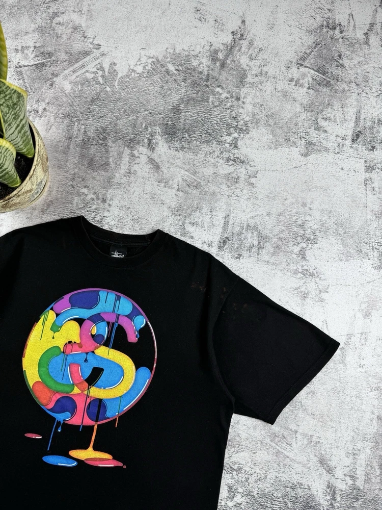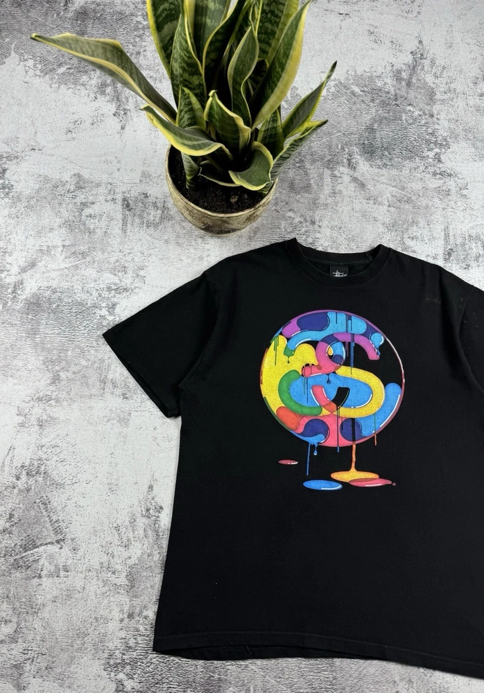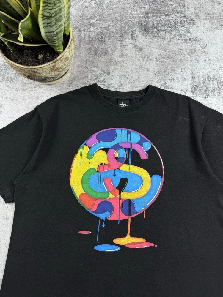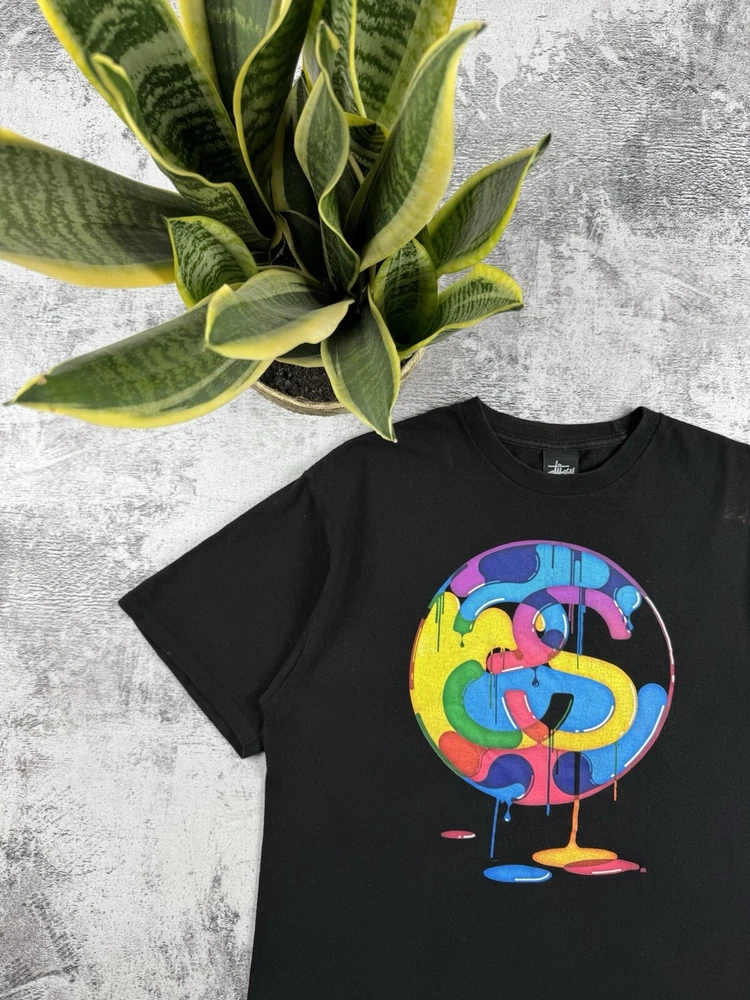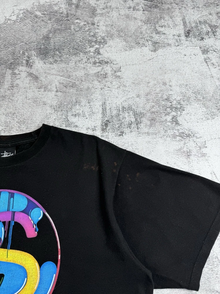 Vintage STUSSY Big SS Logo Black Paint Mexico USA Rap 90S Hip Hop T Shirt Tee