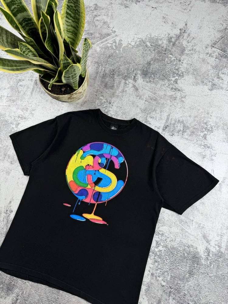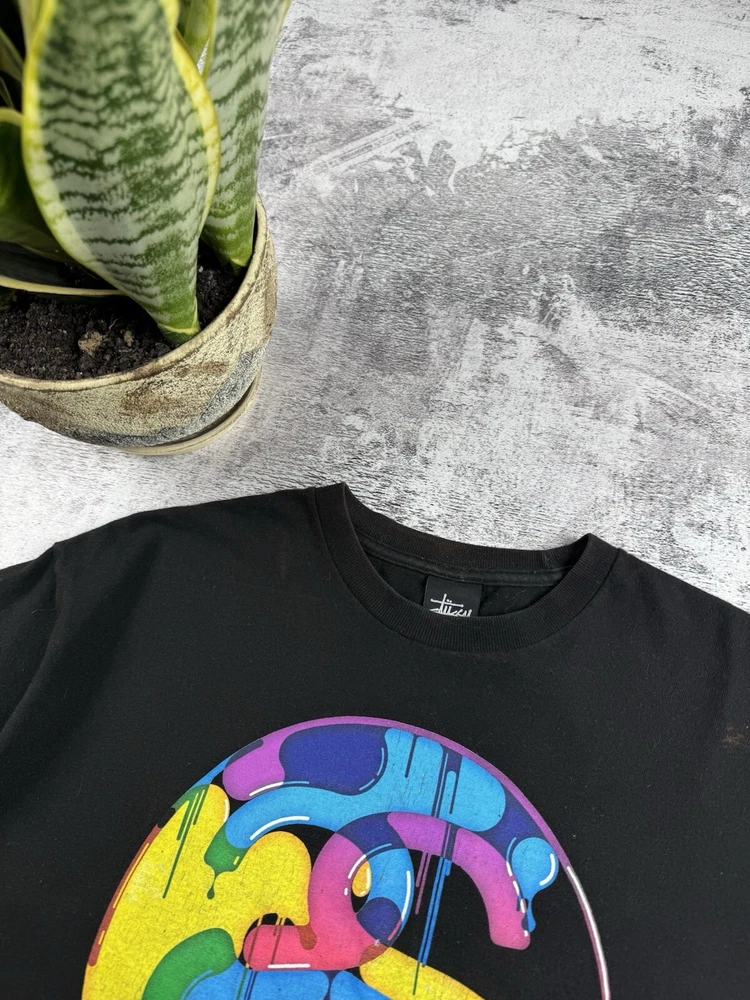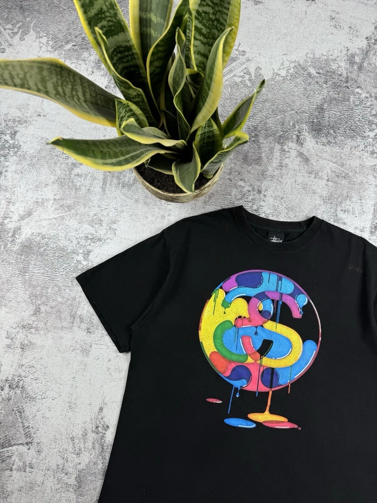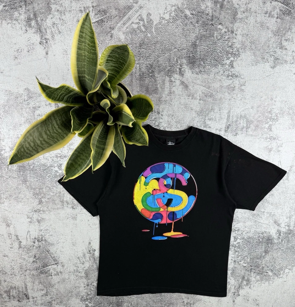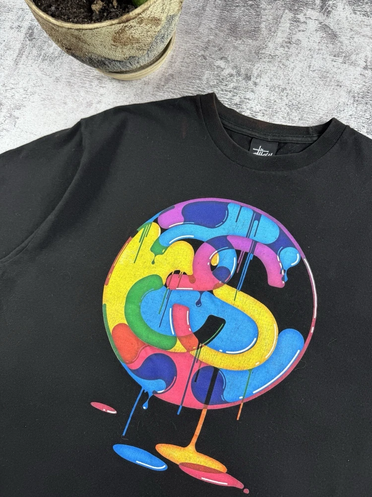 Vintage STUSSY Big SS Logo Black Paint Mexico USA Rap 90S Hip Hop T Shirt Tee