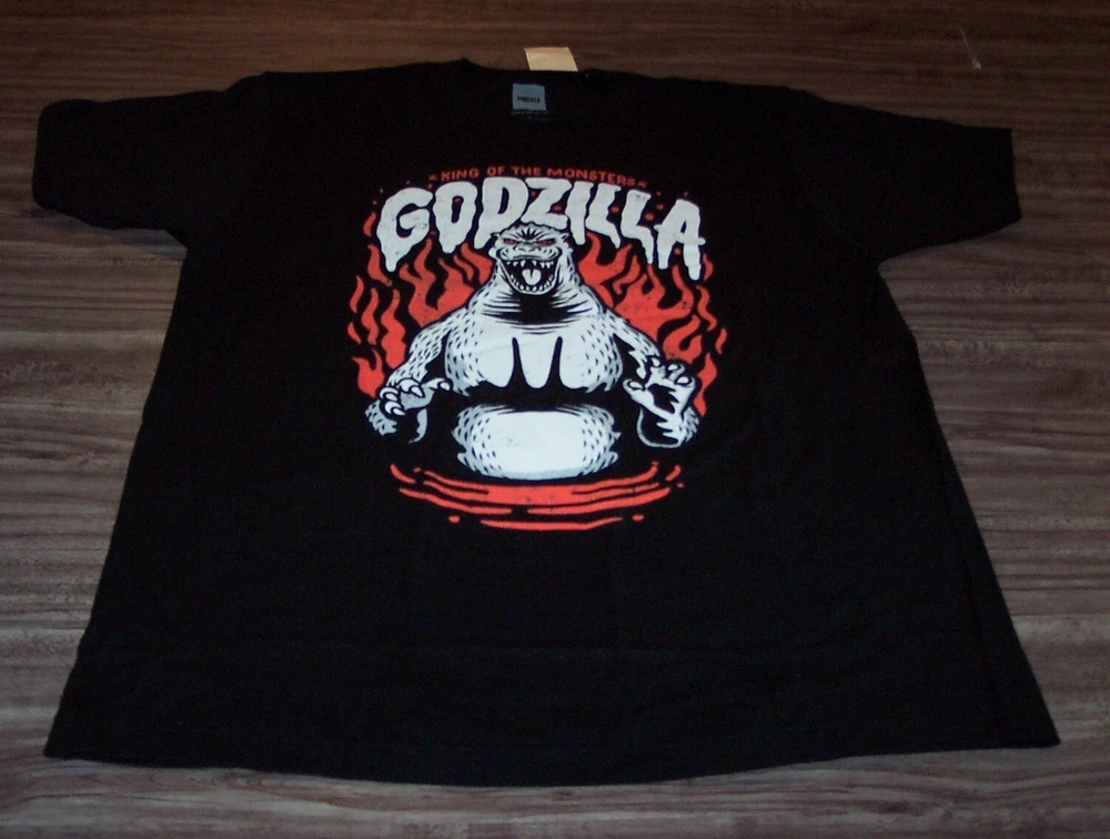 This is a Vintage Style GODZILLA King Of Monsters T-shirt. It is a size LARGE, and it is NEW w/ TAG. It is 22 inches from armpit to armpit and 31 inches in length. The Print is made to look vintage. Combine auctions to save on shipping. D2AD ~~~~~~~~~~~SMOKE FREE HOME!!~~~~~~~~~~~