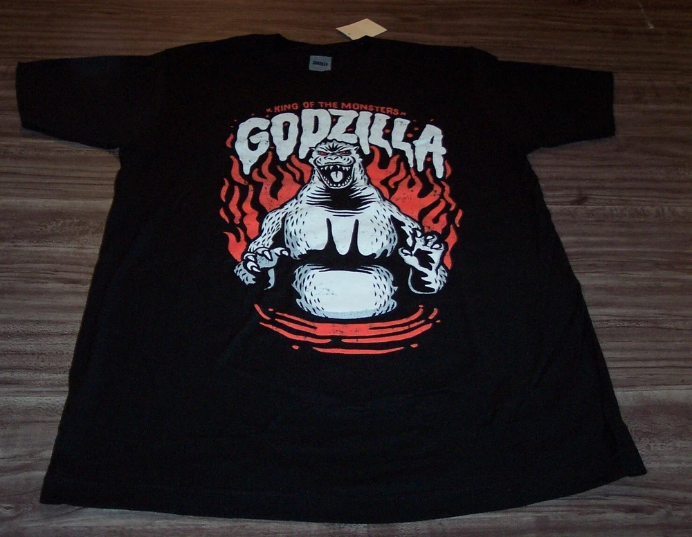This is a Vintage Style GODZILLA King Of Monsters T-shirt. It is a size MEDIUM, and it is NEW w/ TAG. It is 20 inches from armpit to armpit and 30 inches in length. The Print is made to look vintage. Combine auctions to save on shipping. AD ~~~~~~~~~~~SMOKE FREE HOME!!~~~~~~~~~~~