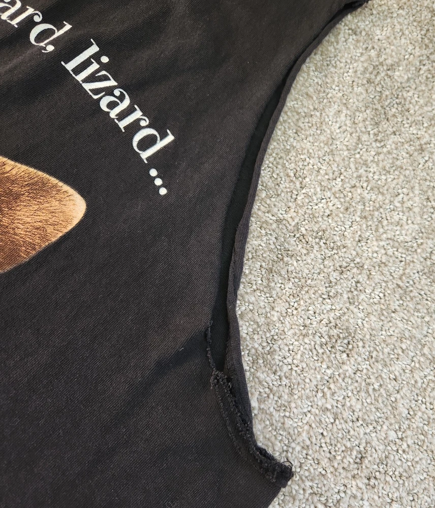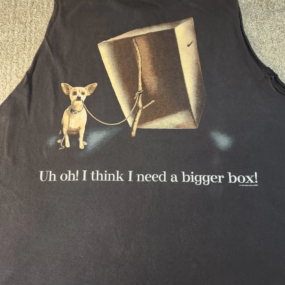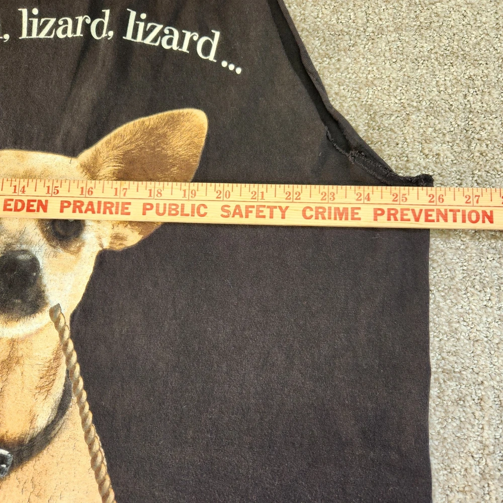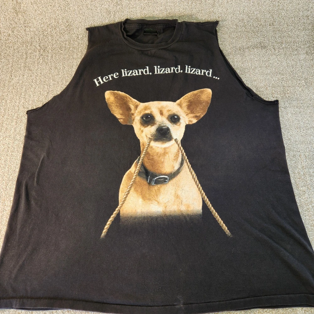 Vintage Taco Bell Chihuahua Shirt Men's XXL Black 90s Here Lizard Lizard. This Sleeves on this shirt have been taken off so it is sleeveless. Look at photos carefully ! ***Small spot on back of shirt. See Photos*** ****Every effort is made to show and list any imperfections or defects of item if any. It is important to carefully look over all photos.**** Items are cleaned according to eBay and manufacturers recommendation. Free 30-day return policy 1-business day shipping for faster delivery to you !