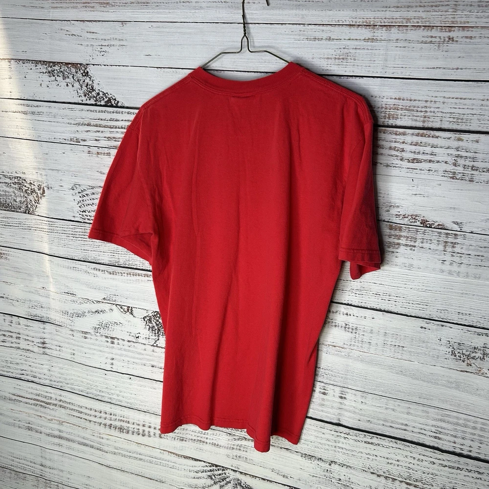 Size tag was cut but it fits either a youth XL or a men’s small based on measurements See measurements because it may not fit like a traditional piece. To ensure best fit, measure your best fitting similar styled garment you own and compare to the measurements provided below. Measurements will tell you exactly how it fits. Tried to include all signs of wear or flaws in pictures. What you see is what you get so make sure you look carefully through out pictures. Returns allowed within 30 days of purchase but buyer pays return shipping. Pit to pit: 18.5 Shoulder/neck seam to waist hem: 24.5