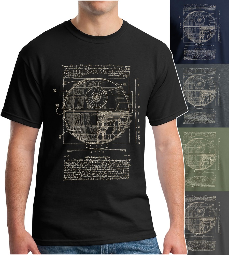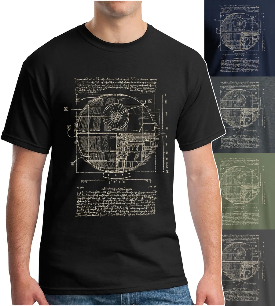 Camiseta Vitruvian Leonardo Da Vinci Estrella de la Muerte Caja Policía Espacial Culto Años 80 Clásica