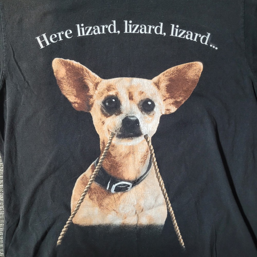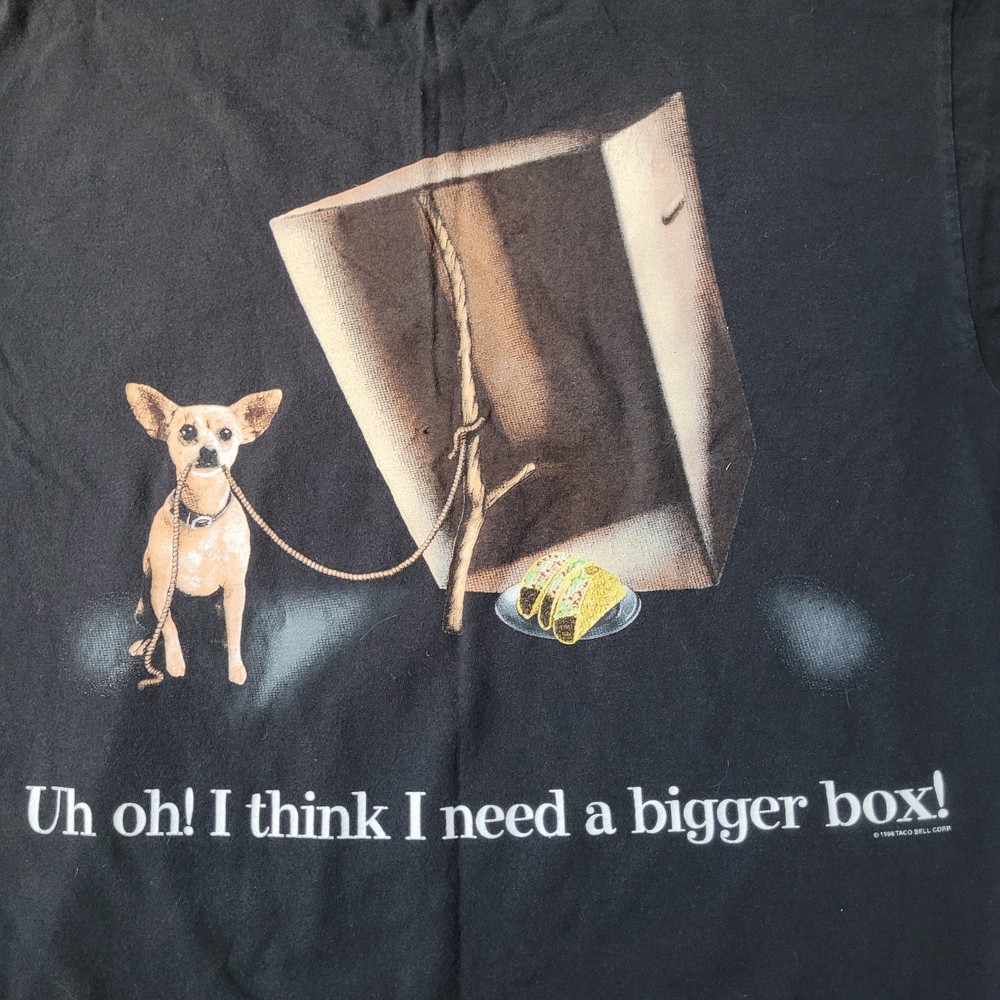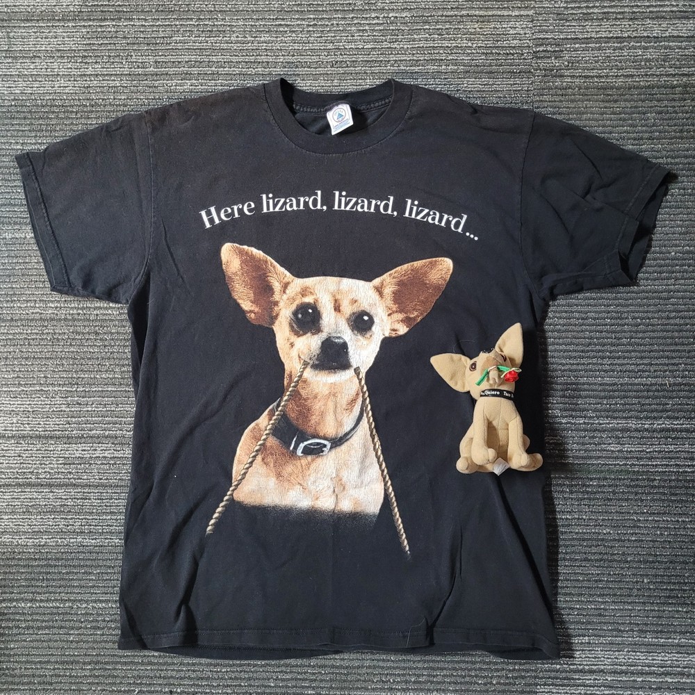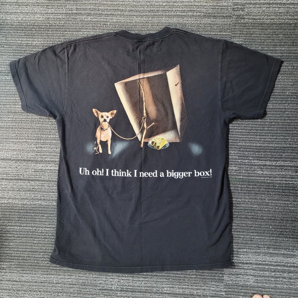 Vtg 1998 Taco Bell Chihuahua Dog 2-Sided Black T Shirt XL Godzilla Movie Promo. Plush no longer talks. Pit to pit 21" length 28"