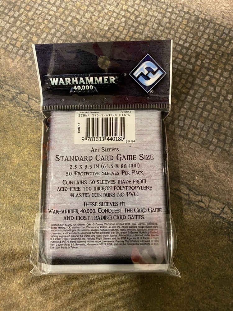 Warhammer 40K Card Sleeves (Ork Art), new in package. I will provide a shipping discount for multiple purchases/listings. Thank you for looking!