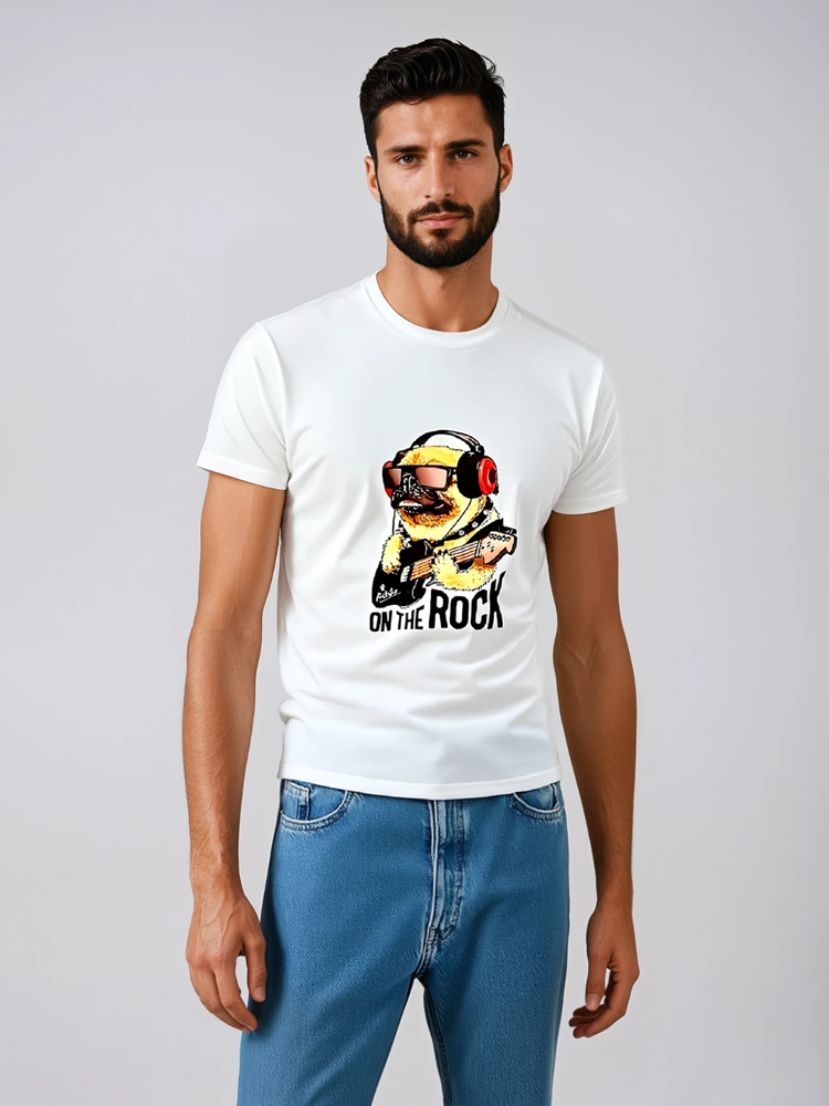 This BCBG Provence Ringspun t-shirt is perfect for a relaxed weekend. The lightweight fabric made of superb quality cotton thanks to luxury soft threads of fine cotton yarn. This t-shirt has a ribbed round neck, short sleeves, elastic trims and finished with a "OnThe Rock Pug " print .. Made of 100% stretch cotton. Made in France. Size: S-shoulders -44cm, chest -49cm, shoulder to bottom -70cm. Gift wrapping included. Limited edition 1 of 1. Machine wash 40°