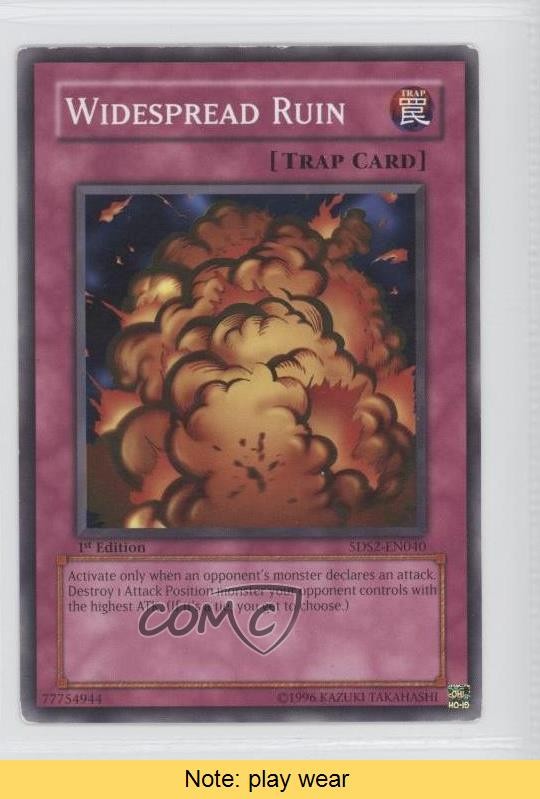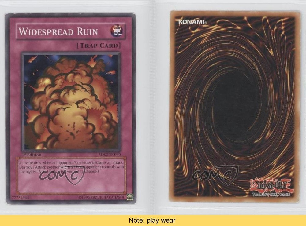 2009 Yu-Gi-Oh! 5D's 2 - Starter Deck [Base] - 1st Edition #5DS2-EN040 Widespread Ruin COMC Item: 11623718 CONDITION NOTE: play wear - YuGiOh Card - Featuring Widespread Ruin Search for more: 2009 Yu-Gi-Oh! 5D's 2 Search for more: 2009 Yu-Gi-Oh! 5D's 2 - Starter Deck [Base] - 1st Edition View all of our Listings Auctions Buy It Now About Us Located in the beautiful Pacific Northwest, COMC (Check Out My Cards) is the world's largest consignment service for trading card singles. More than 10,000 people have used our consignment service to list over 50 million trading cards. Find out how we can help you consign your items on eBay by contacting us through eBay messaging. COMC -- "The Safe & Easy Way to Buy & Sell" Raw Condition for Modern Cards Unless otherwise noted, raw modern cards are listed in Near Mint-Mint condition or better. A NM-MT card appears to be Mint at first glance, but upon closer inspection, may exhibit some of the following: minor print defects (e.g. roller marks, print line, dimple), minor scratches, slight edge wear, and slight corner wear. Centering is clearly visible in the images provided and does not factor into our condition assessment. Raw Condition for Vintage Cards Unless otherwise noted, raw vintage cards are listed in Excellent condition or better. An EX card may exhibit some of the following: minor rounding of corners, surface wear, print defects, light scratches, and slight edge wear/chipping. Centering is clearly visible in the images provided and does not factor into our condition assessment. Domestic Shipping Combined shipping for multiple items is available. To receive combined shipping, please ensure all desired items are in your eBay shopping cart before proceeding to checkout. eBay limits orders to 40 items per order. We automatically combine multiple orders placed on the same day. If you place multiple orders on the same day, please contact us to request a refund of applicable shipping costs. Signature confirmation may be required on invoices over $400. All cards are protected and shipped securely. International Shipping COMC offers eBay's International Shipping (EIS) for international orders under $2,500* (see country exceptions below). All duties and import fees are paid at checkout; in the rare event that there are additional import fees upon delivery, these are borne by the buyer. EIS packages route through a shipping hub in Erlanger, KY before shipping to their final destination. Please note that EIS does not allow for combined shipments. The shipping rates are determined by eBay and cannot be adjusted. *Maximum sale price exceptions: Colombia, Kuwait ($2,000); Taiwan ($1,539); Chile, Costa Rica, Guatemala, Honduras, Trinidad and Tobago ($1,000); Antigua and Barbuda, Aruba, Belize, Dominica, Grenada, Philippines, Saint Kitts and Nevis, Saint Lucia, Montserrat, Turks and Caicos Islands ($500); Dominican Republic, El Salvador ($200). Please request a shipping quote through eBay messaging for orders that exceed the maximum sale price supported by eBay's International Shipping. You will be responsible for all duties and import fees for international orders shipped outside the EIS. All cards are protected and shipped securely. Payment COMC does not accept offers on our cards through our eBay storefront. COMC utilizes eBay’s managed payments system. If you are experiencing difficulties making a payment, please contact eBay for assistance. Return Policy Returns are only accepted on the rare occasion the item is not as described. If you are making a return, please initiate the return process through eBay so a mailing label can be provided for you. Prior to listing, our expert team carefully assessed this item to represent it accurately. Please review the description and high-definition images prior to purchasing to ensure this item meets your satisfaction. We welcome you to contact us if you have further questions about this item. Trust and Integrity COMC carefully assesses each item consigned to us to prevent fraudulent items from entering the marketplace. If you believe an item offered on COMC may be fraudulent, please contact us with details so we can investigate the issue. Items we determine are outside our supported items policy may be removed. Last Modified: 6/4/2025 11:54:50 AM PDT