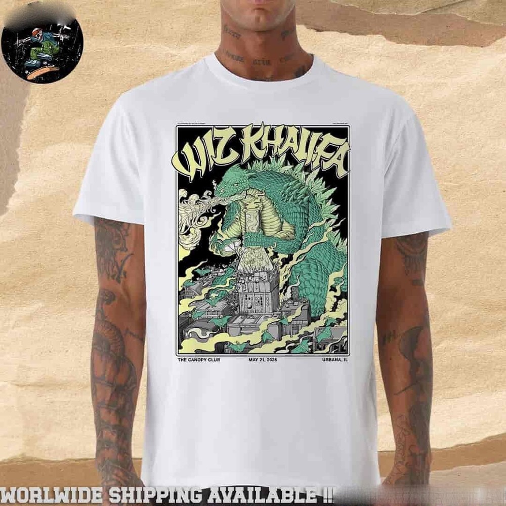 Wiz Khalifa Show In Urbana IL At The C anopy.Club On May 21 2025 Godzilla Art Work Merchandise Unisex T-Shirt All Size S-4XL ✨ WELCOME TO MY STORE! ✨ 🛍️ We sell a wide range of shirts for all ages! Whether you're shopping for kids, teens, or adults, we've got you covered. If you're looking for different types of shirts or need any assistance, don't hesitate to reach out to us! We're here to help. 🛍️ We specialize in printing high-quality designs on clothing, including t-shirts, sweatshirts, and hoodies. We work with the best print providers worldwide to ensure premium quality and excellent service. Your satisfaction is our priority! 💯 🎨 Custom Design Available: 🔥 We accept custom designs! You can request any design you want printed on our shirts. Whether it's a band tee, anime, vintage, or a personalized design, we've got you covered! 🔹 Condition: ✔️ Brand new with tags 🔹 Material: ✔️ T-shirt: 100% Cotton ✔️ Sweatshirt & Hoodie: 50% Cotton + 50% Polyester (to enhance durability) 🔹 Available Sizes: ✔️ S - 4XL 🔹 Neckline: ✔️ Round Neck 🔹 Size Guide: ✔️ Please refer to the size chart before ordering 📏 👕 Material & Design: ✔️ Made from high-quality elastic fabric—lightweight, super soft, and skin-friendly. ✔️ Features cropped & regular styles, allowing you to wear it normally or as a crop top. ✔️ Slim fit, casual style, scoop neck, short sleeves—perfect for a trendy look! 🎉 Perfect for Any Occasion: 🔥 Great for going out, workouts, gym, yoga, daily wear, streetwear, parties, clubs, dating, beach trips, travel, shopping, and more! Suitable for all seasons. 🧼 Care Instructions: ✔️ Machine washable 💦 ✔️ Hand wash in cold water recommended ❄️ ⚠️ NOTE: ✅ Any issues with print quality? We offer free exchanges & returns! ❌ Ordered the wrong size or color? Unfortunately, we do not support exchanges or returns for incorrect selections. ⚠️ All products in our store are custom-made and are not official merchandise. 🙏 Thank you for your understanding! ✨ Happy Shopping! 😊 ✨