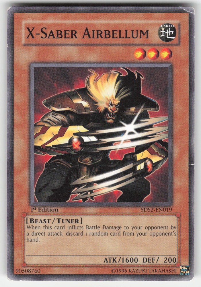 The X-Saber Airbellum 5DS2-EN019 is a Yu-Gi-Oh! trading card manufactured by Konami. It is a 1st Edition card with a Regular finish, making it a valuable addition to any collector's deck. As a Common rarity card, it is likely to be more abundant in the game, but its unique design and playability make it sought after by players looking to enhance their strategies. Whether you're a seasoned Yu-Gi-Oh! player or a casual collector, this card offers a special addition to your collection to be enjoyed for years to come.