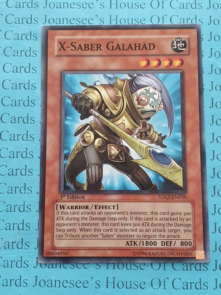 This is a Common Earth Warrior X-Saber Galahad 4 Stars ATK/1800 DEF/800 Card text: If this card attacks an opponent's monster, this card gains 300 ATK during the Damage Step only. If this card is attacked by an opponent's monster, this card loses 500 ATK during the Damage Step only. When this card is selected as an attack target, you can Tribute another "Saber" monster to negate the attack. 5DS2 -EN020 1st Edition English Mint/NMint Condition Totally Original Konami (or your money back!) I will deliver in safe packaging to keep it in perfect condition. Ideal for players and collectors alike. Check out my other items! I will combine postage costs for multiple purchases. Sign up for my email newsletters by adding my eBay Shop to your favourites