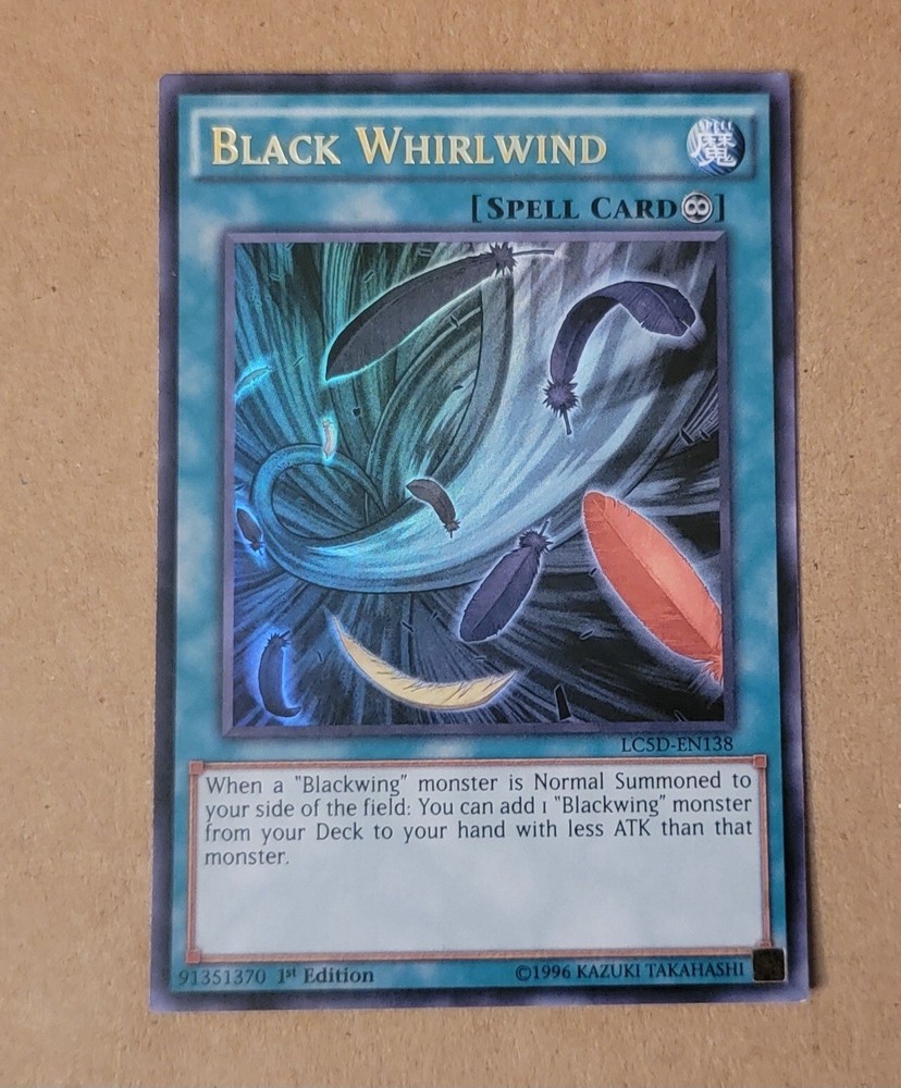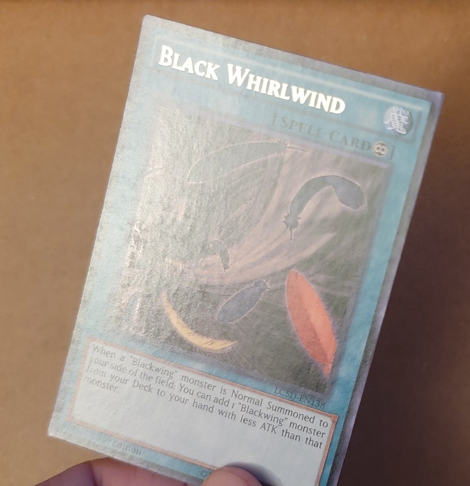 You will receive 1x Black Whirlwind Ultra Rare 1st Ed exactly as pictured above. The card does show scuffing on the back and front of the card, however, the card is in perfect playable and collectible condition with NO tears, creases, or significant damage of any kind. If you have any questions please feel free to message us.