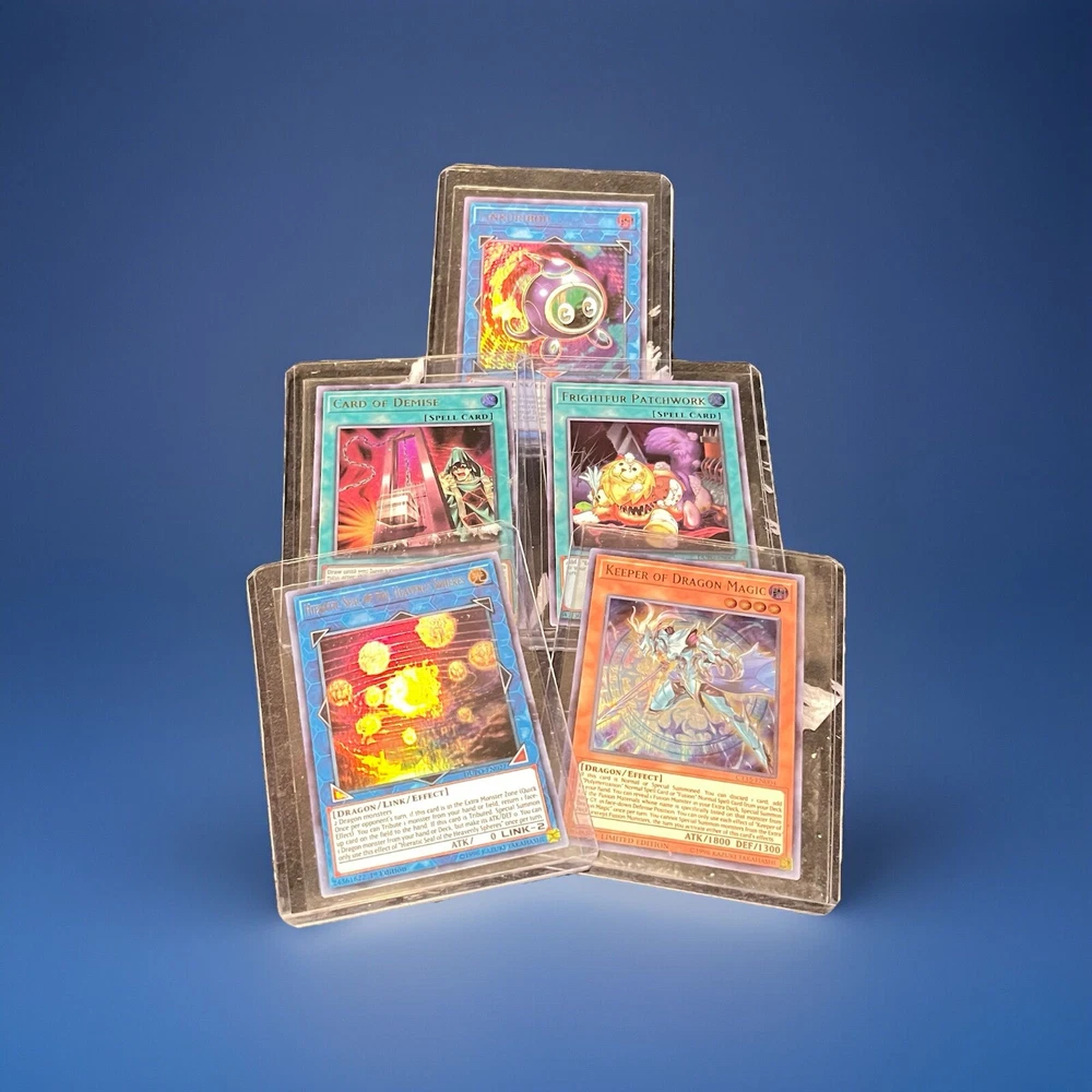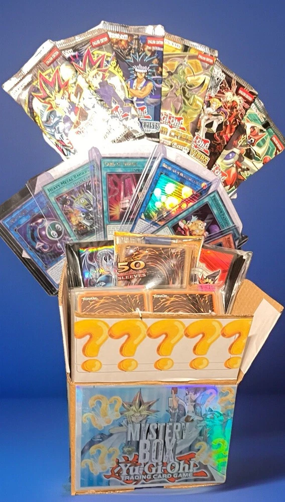 ALL FIRST EDITIONS Well taken care of collection Every card are in penny sleeves 98% of collection is totaly NM Each cards value is worth equal to or over $0.99c This is an amazing Mystery box of 100 holographic Yu-Gi-Oh! trading cards,with random possible rarities such like super, ultra, and secret cards from various sets such as Ghost From The Past 2, Speed Duel GX, and Legend of Blue Eyes White Dragon. This mystery box will come with five items 1 pack of 100 randomly selceted cards with no copies HOLO, ULTRA, SECRET, RARES 1ST EDITONS 1 pack of 50 randomly selected card sleeves some with graphic print and some with sold colors 1 random holo foil card in a penny sleeve and top loader= POTENIAL worth anywhere between $1-$20 1 random dueling mat with a POTENIAL to uncover a valuable dueling mat worth up to $20 3 booster pack value of booster have a huge range of prices PICKED RANDOM FROM WHAT YOU SEE IN PHOTOS PLEASE LOOK AT THE PHOTOS TO DETERMINE WHETHER THIS MYSTER BOX IS WORTH THE PURCHES PHOTOS ARE 100% ACCURATE OF THE POSSBILE GUARANTEED 7 ITEM SELECTION IN THIS MYSTERY BOX