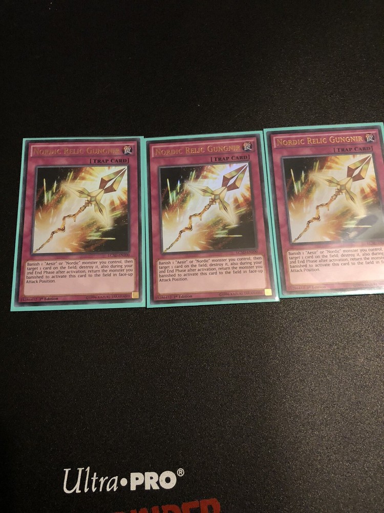 YUGIOH! 3x NORDIC RELIC GUNGNIR 1st ED LC5D-EN200 ULTRA RARE. Condition is "Used". Shipped with USPS Sleeved with toploader for protection